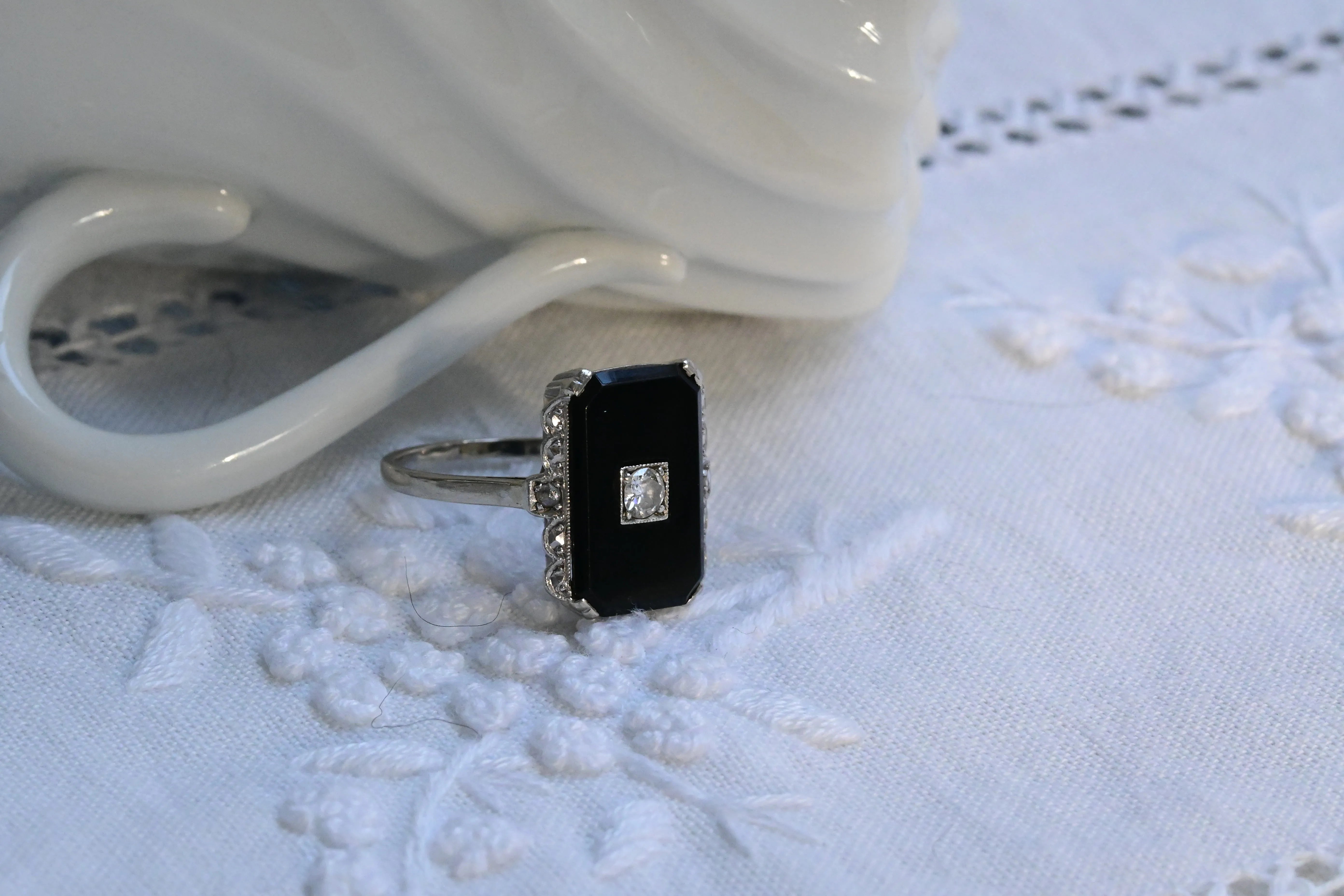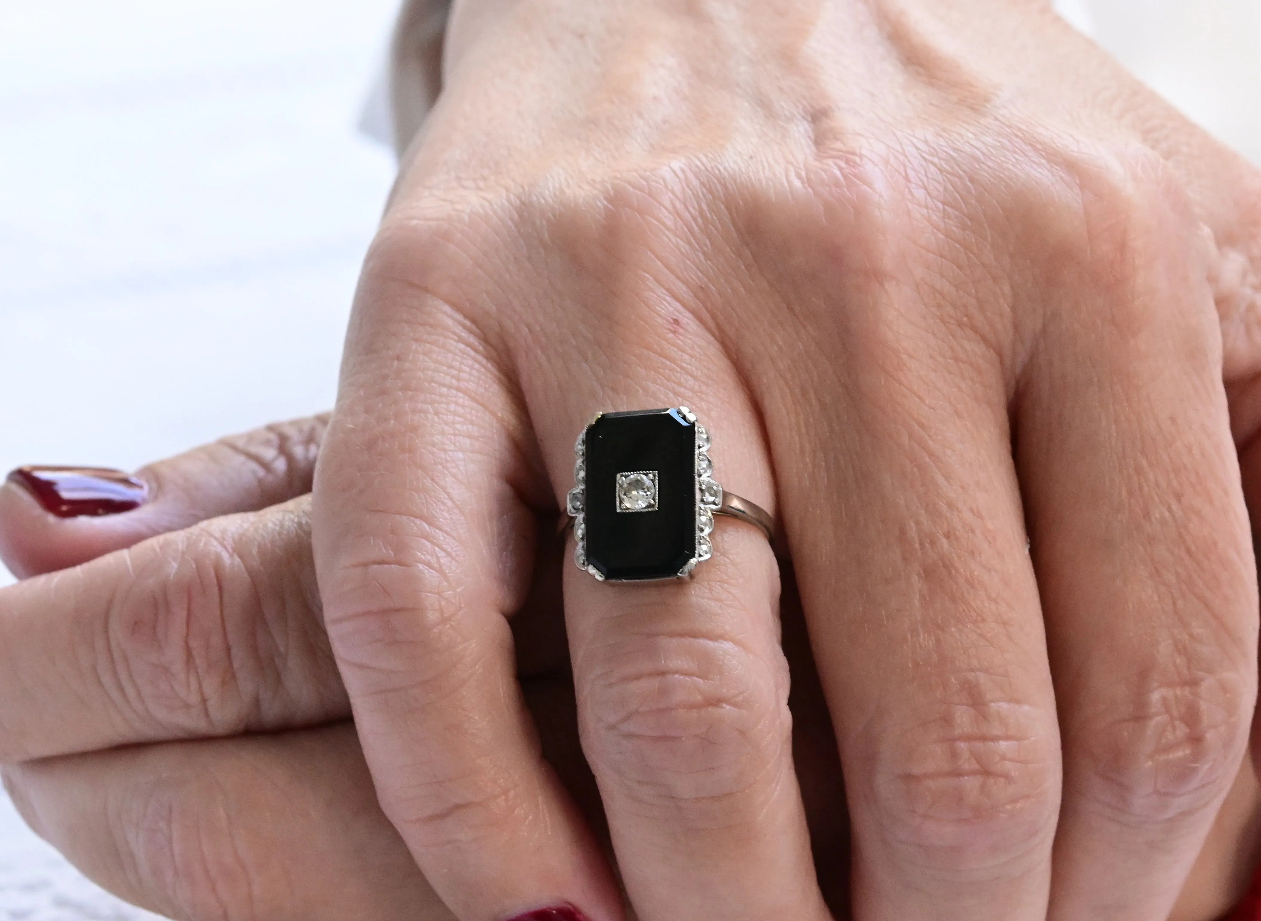 Vintage diamond and onyx ring