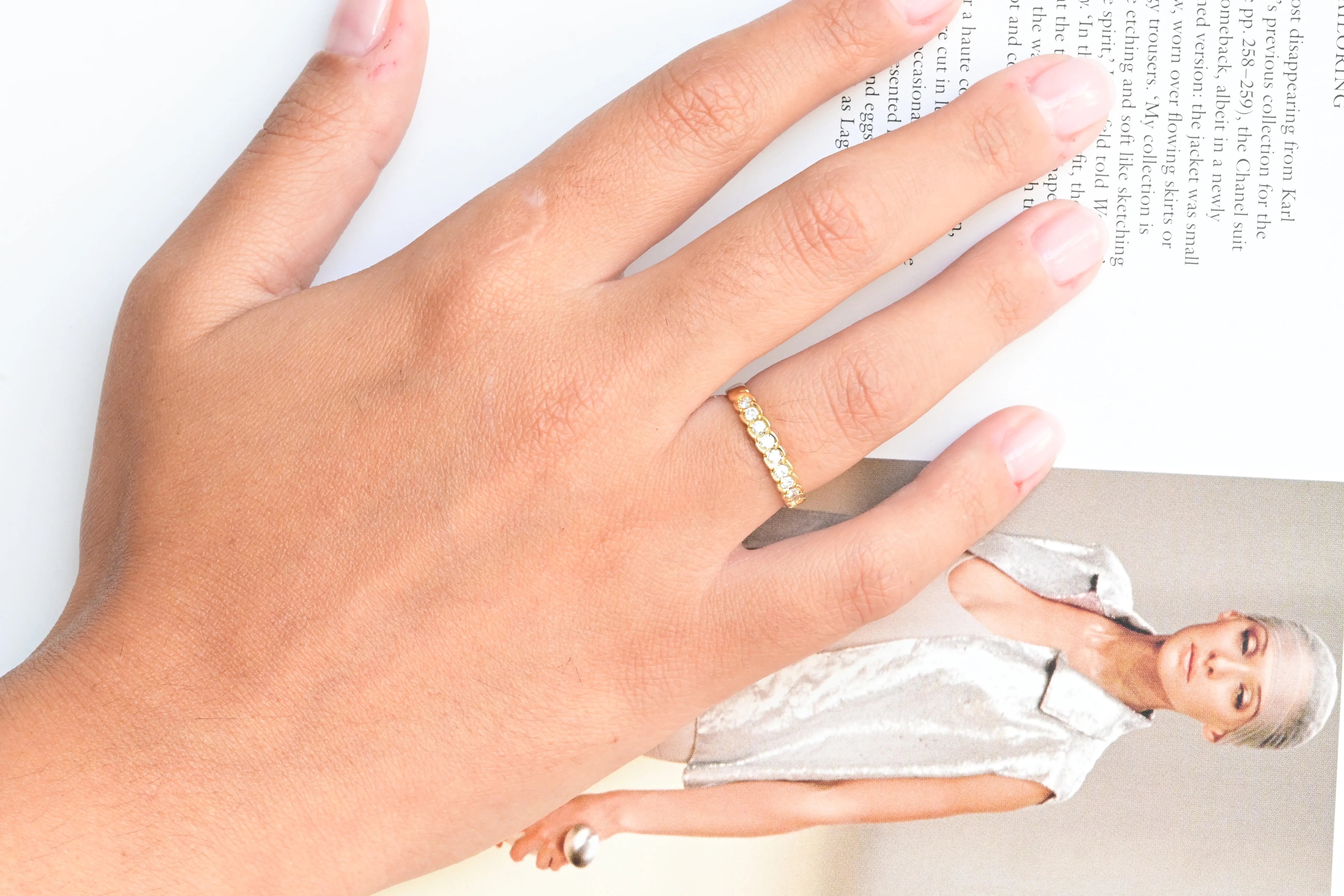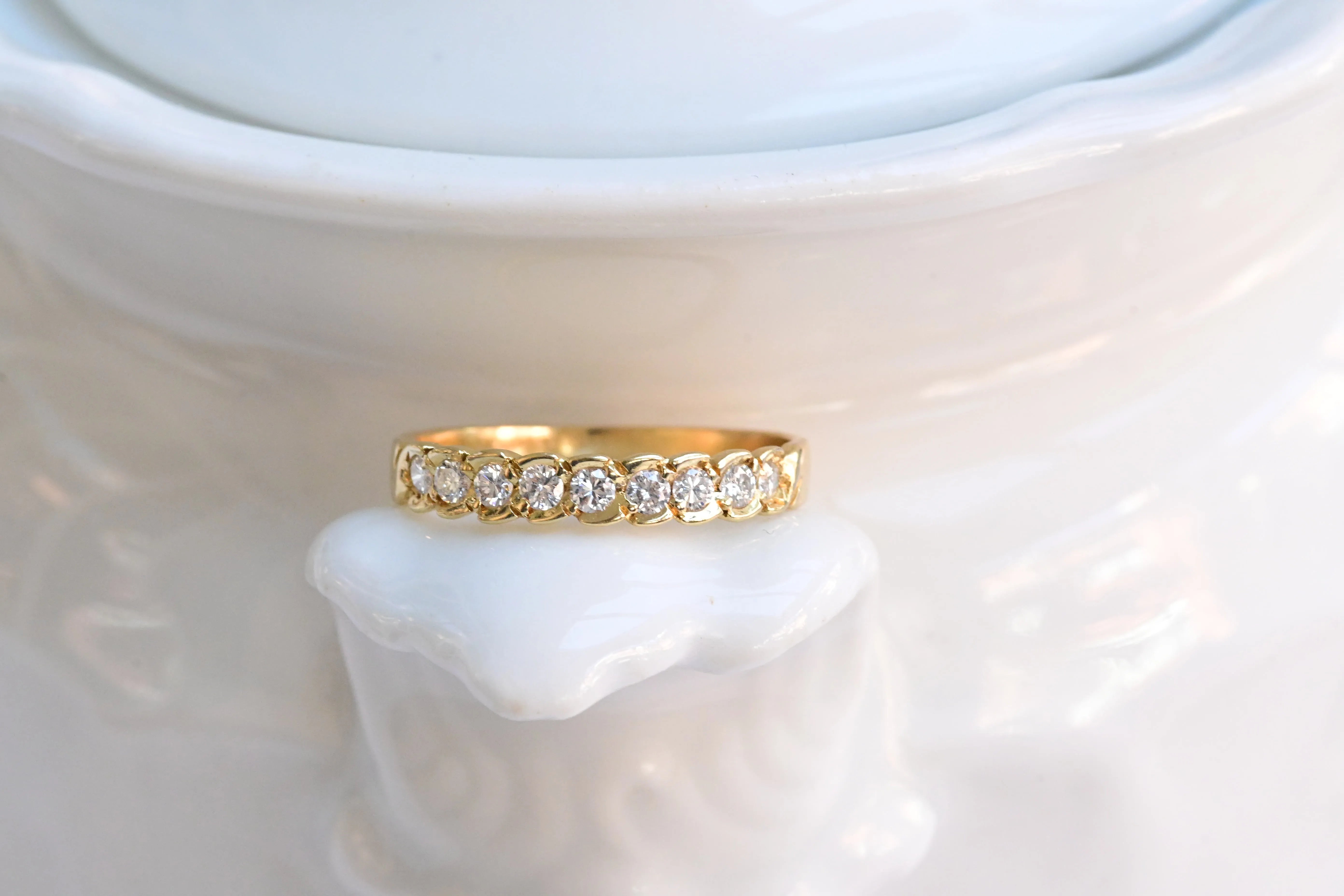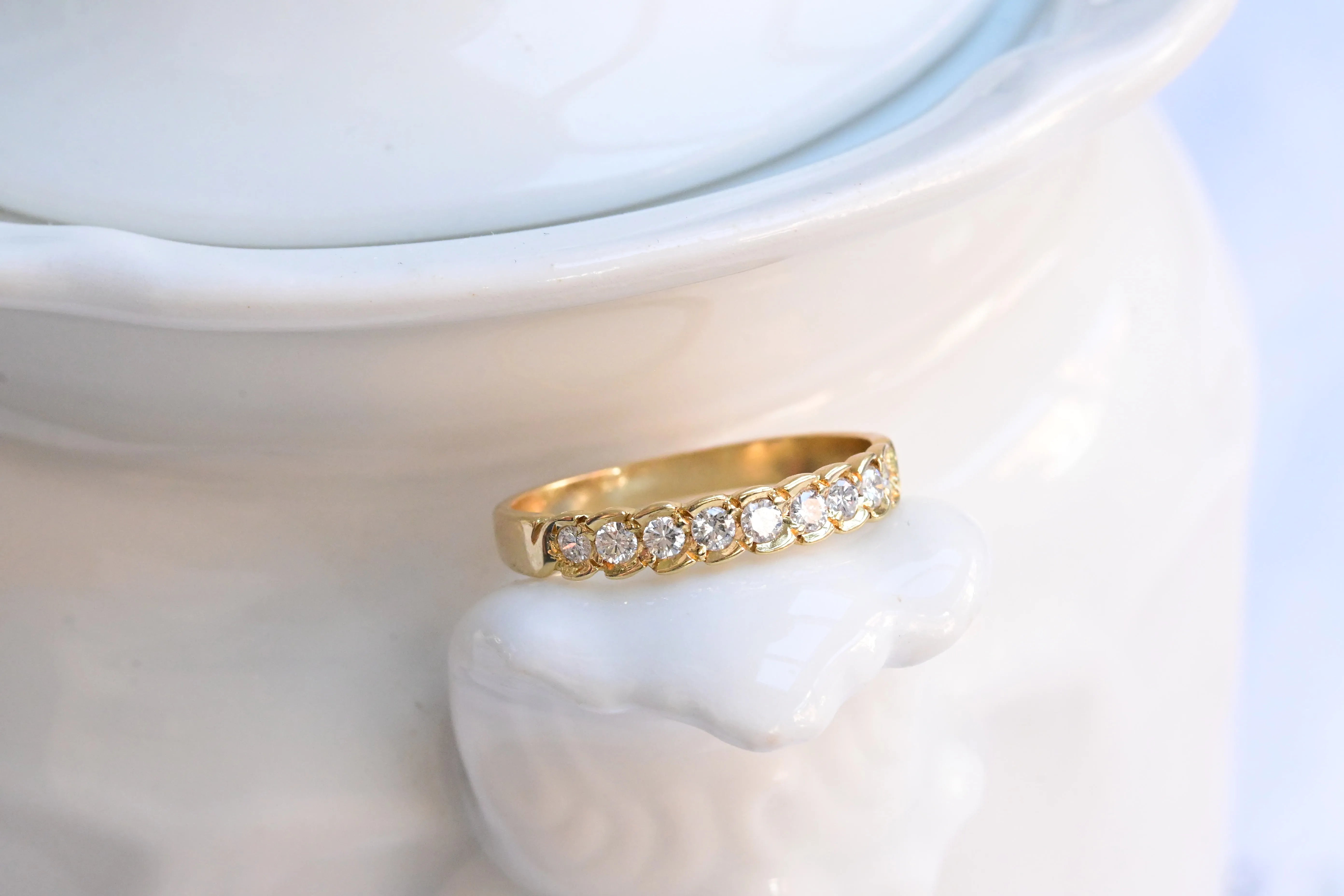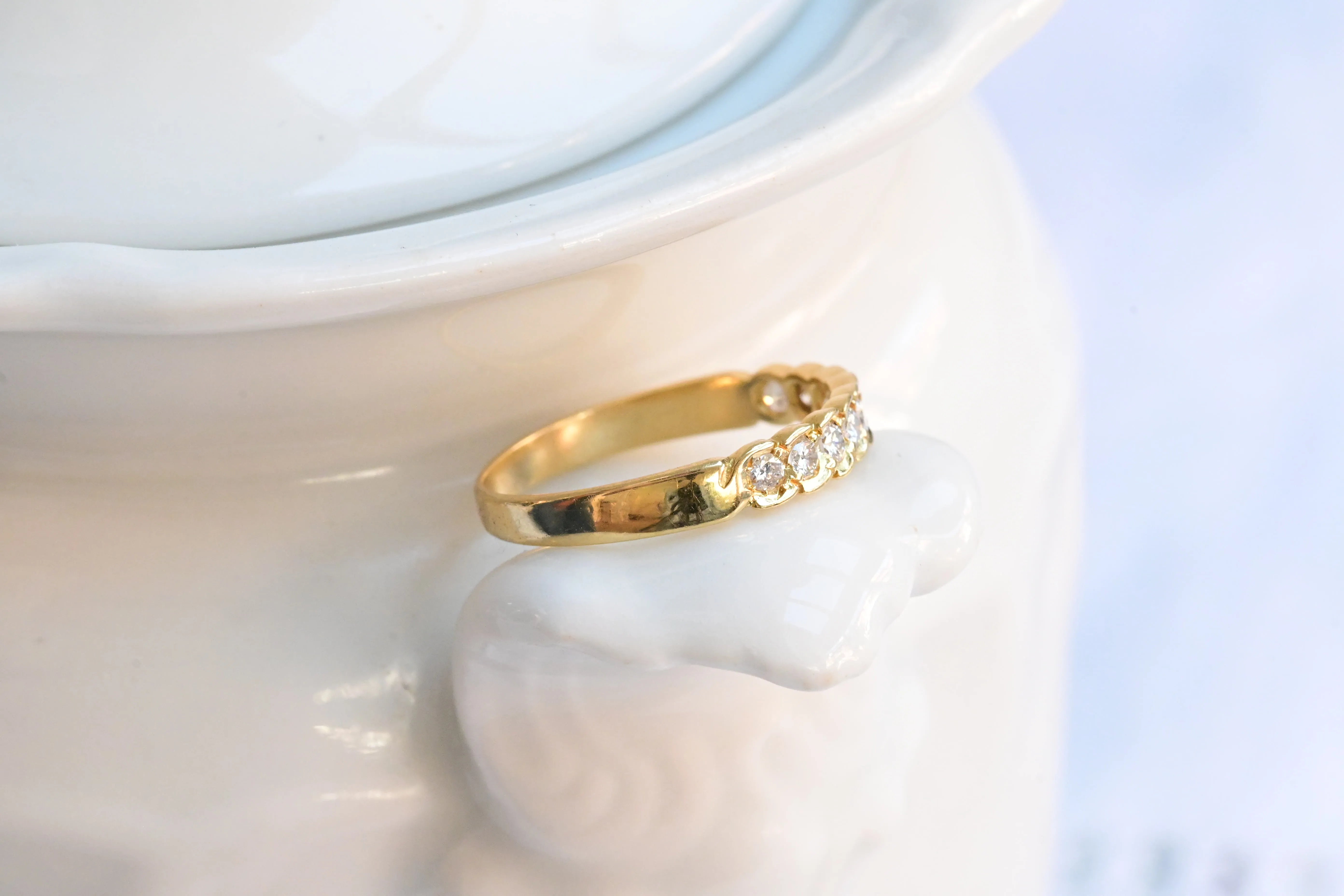 Vintage ring, crafted in 18 K yellow gold adorned with a total of nine round brilliant cut diamonds