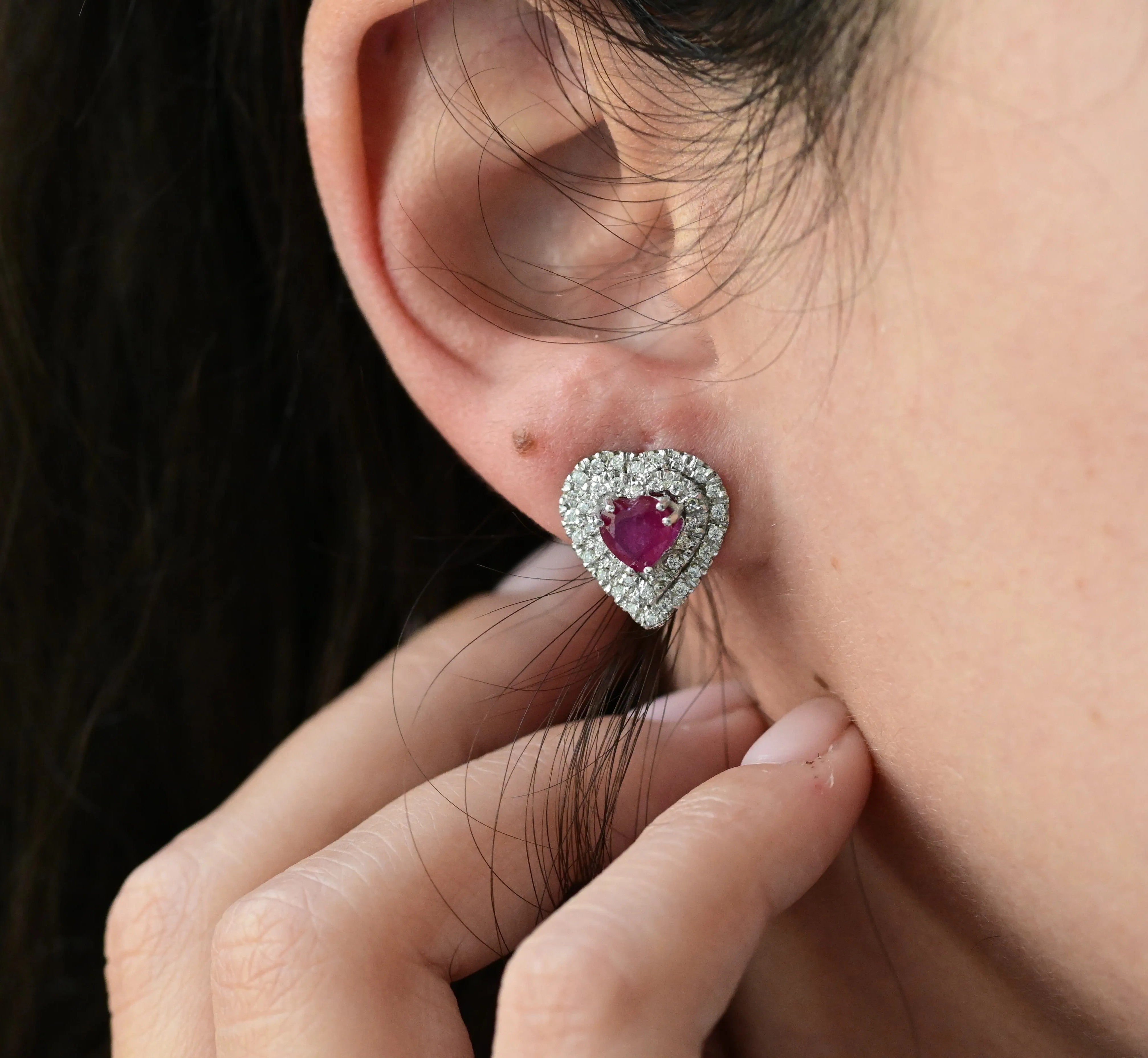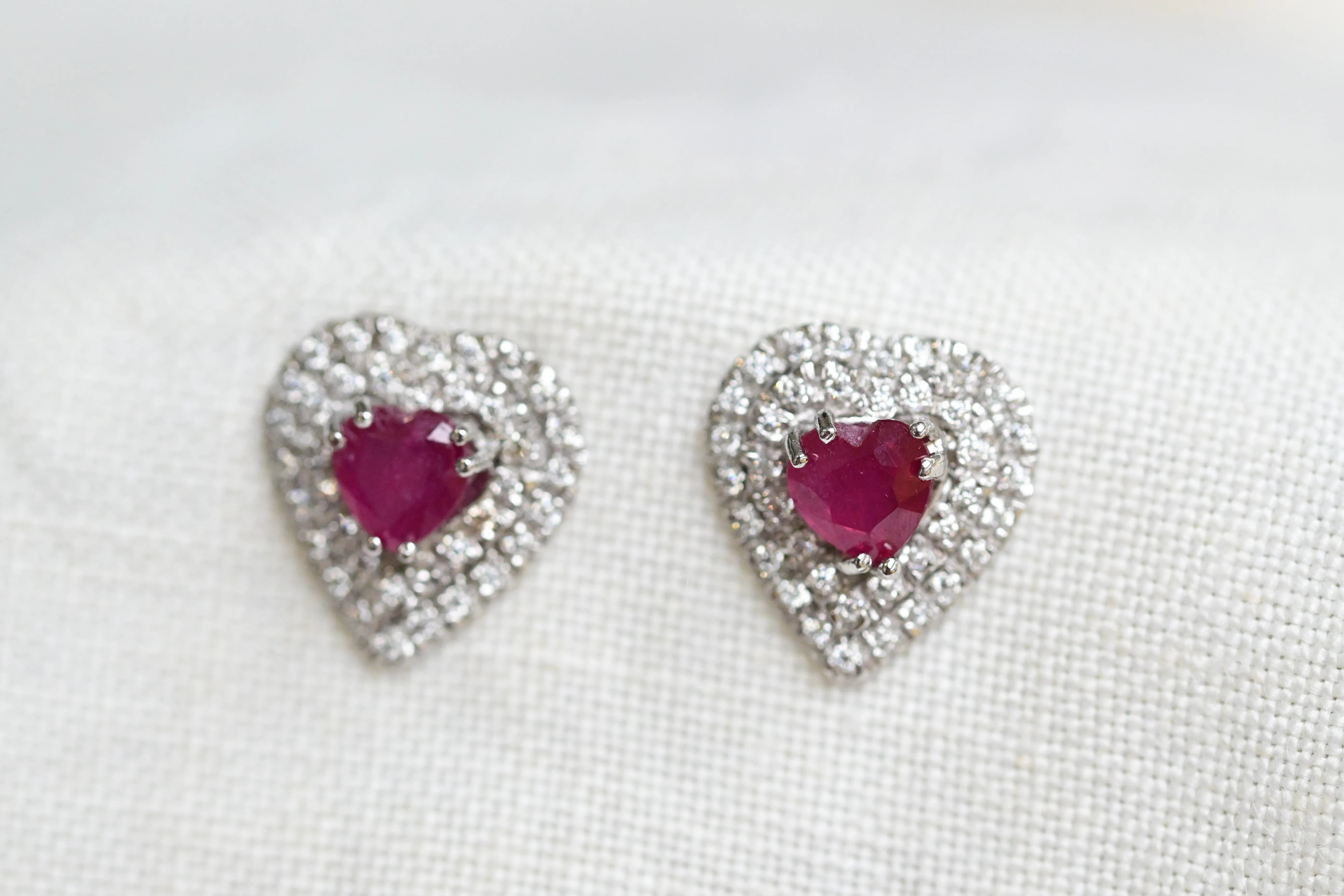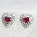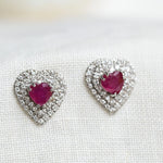 Vintage heart ruby and diamond earrings
