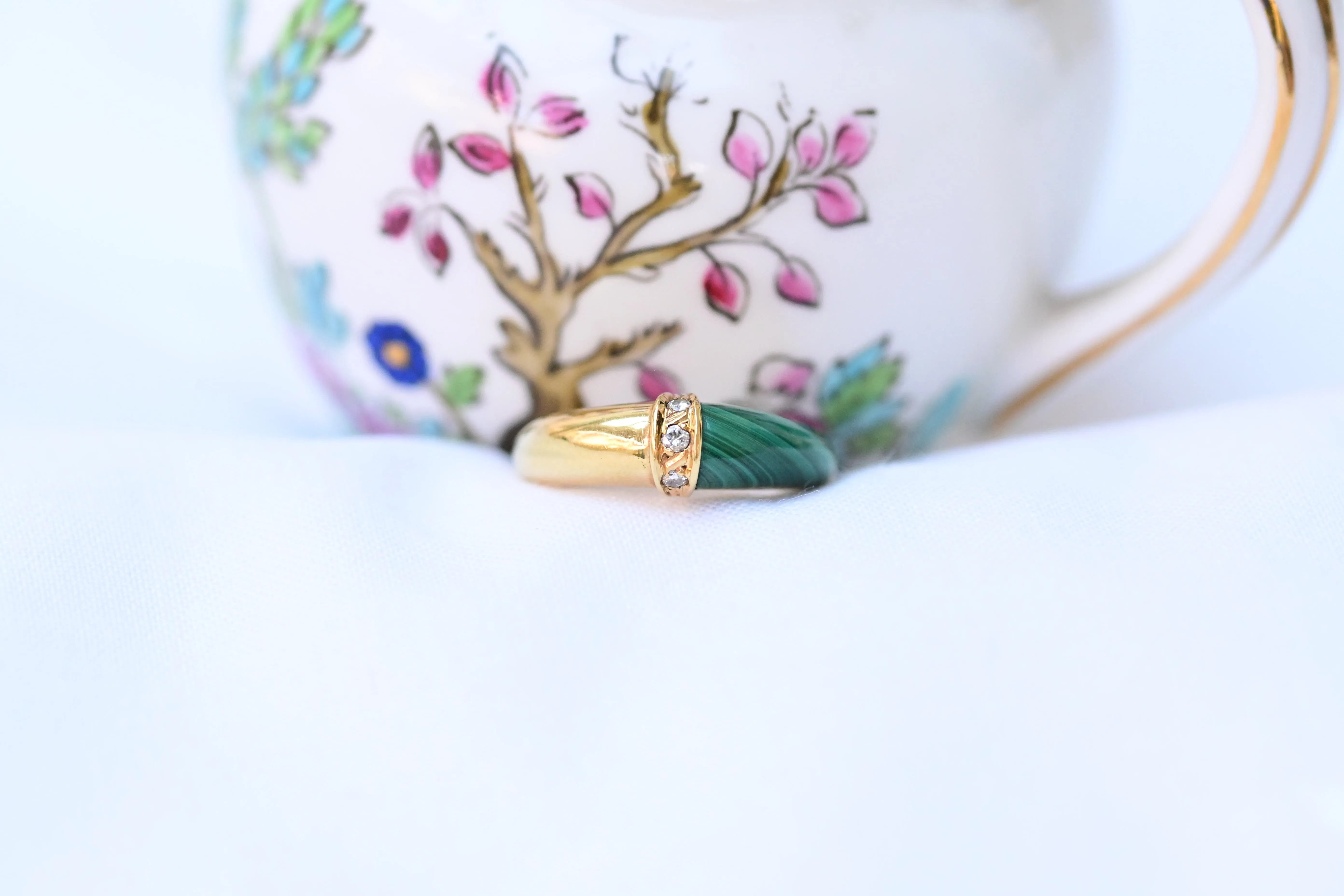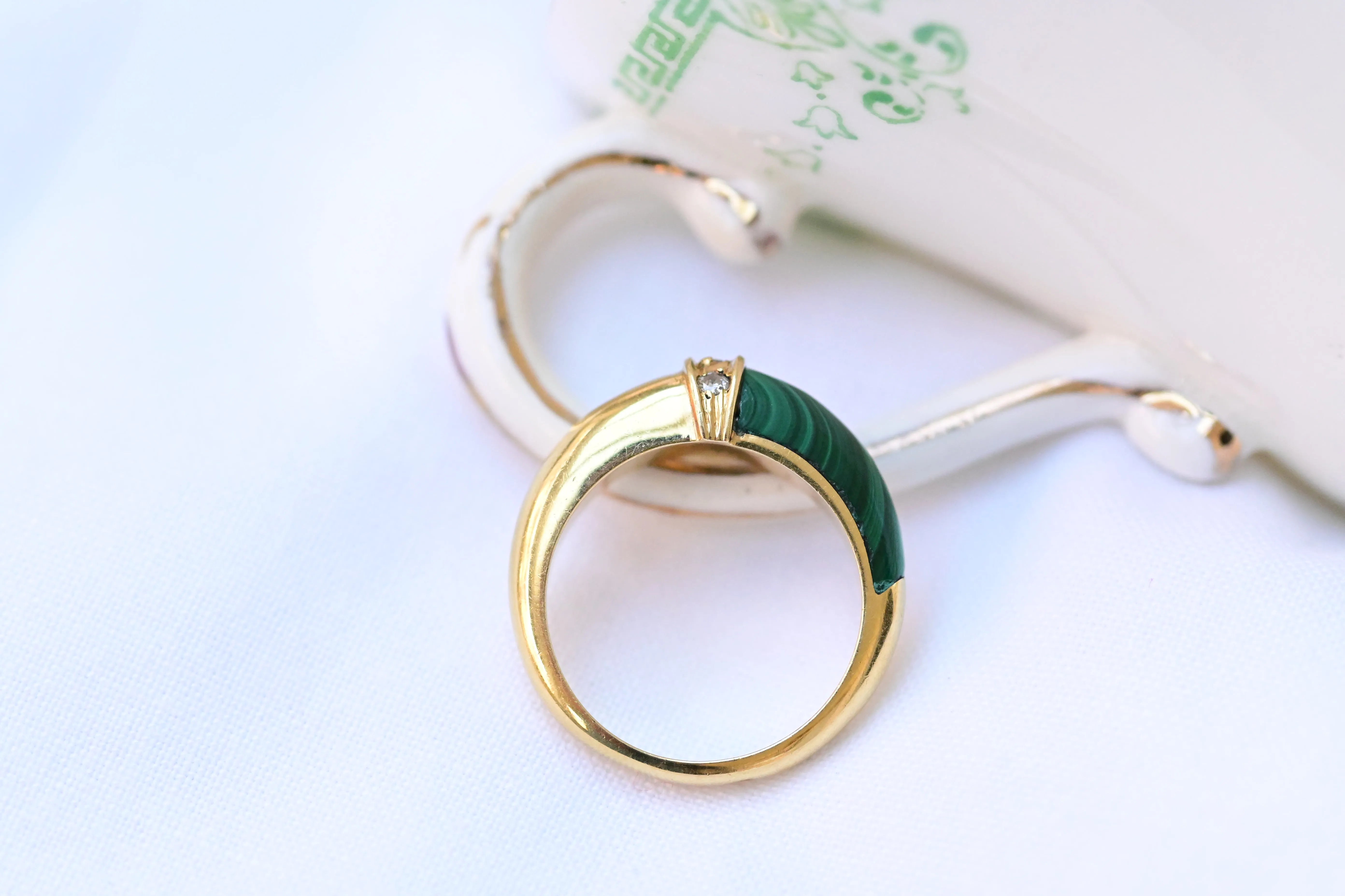 Vintage-Ring mit Malachit und Diamanten
