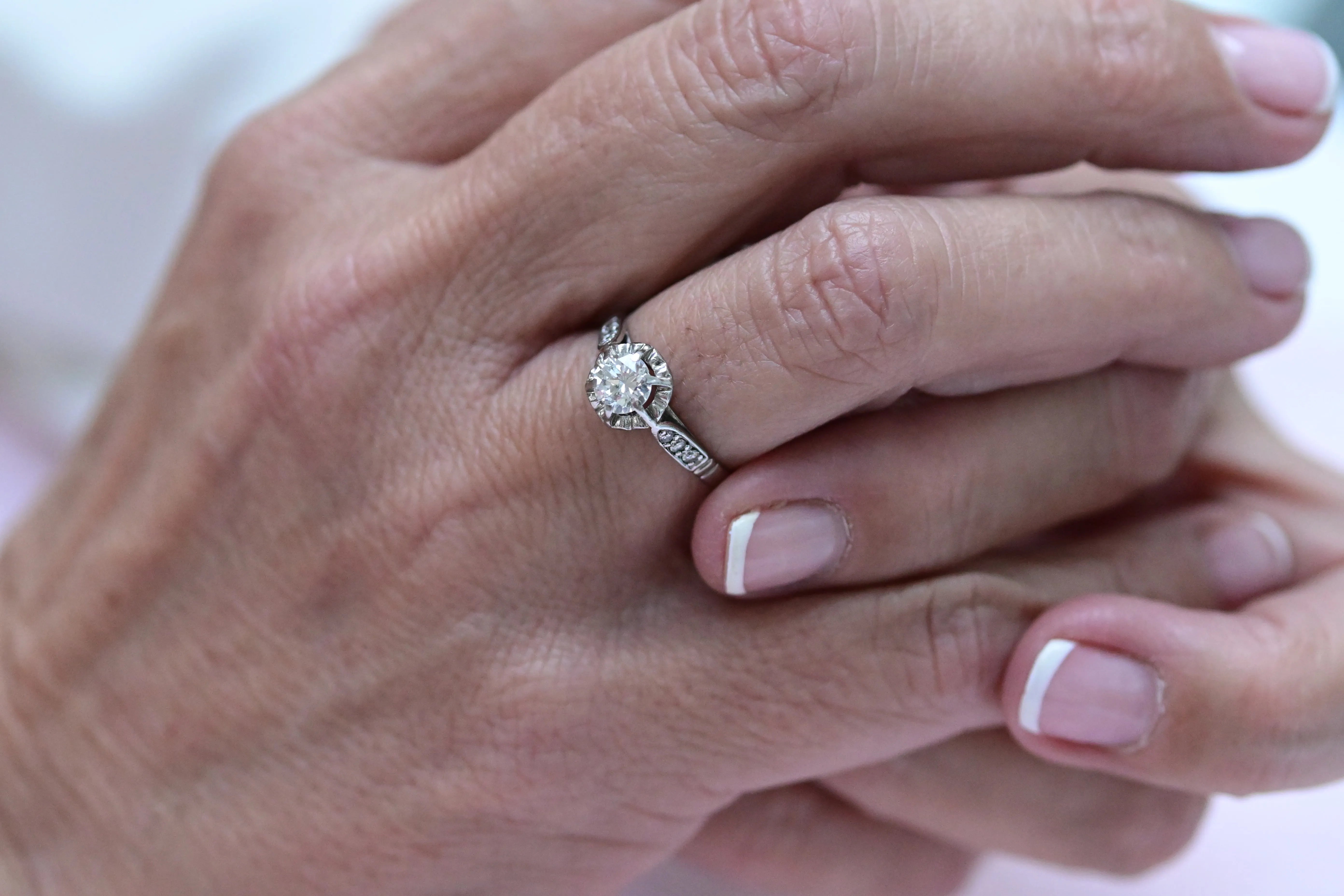 Il mio ragazzo mi ha sorpreso e mi ha chiesto di sposarlo con l'anello Art Deco più bello di Moira Antique Jewellery. Dovevamo cambiarne le dimensioni, ma lo abbiamo fatto presso una gioielleria nelle vicinanze, anche se ci è stato offerto di farlo lì. Non potrei amare di più questo anello anche se ci provassi!