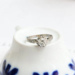 Vintage ring, from the 1950s, crafted in 18 K white gold with a central round brilliant cut diamond and surrounded by other six diamonds.
