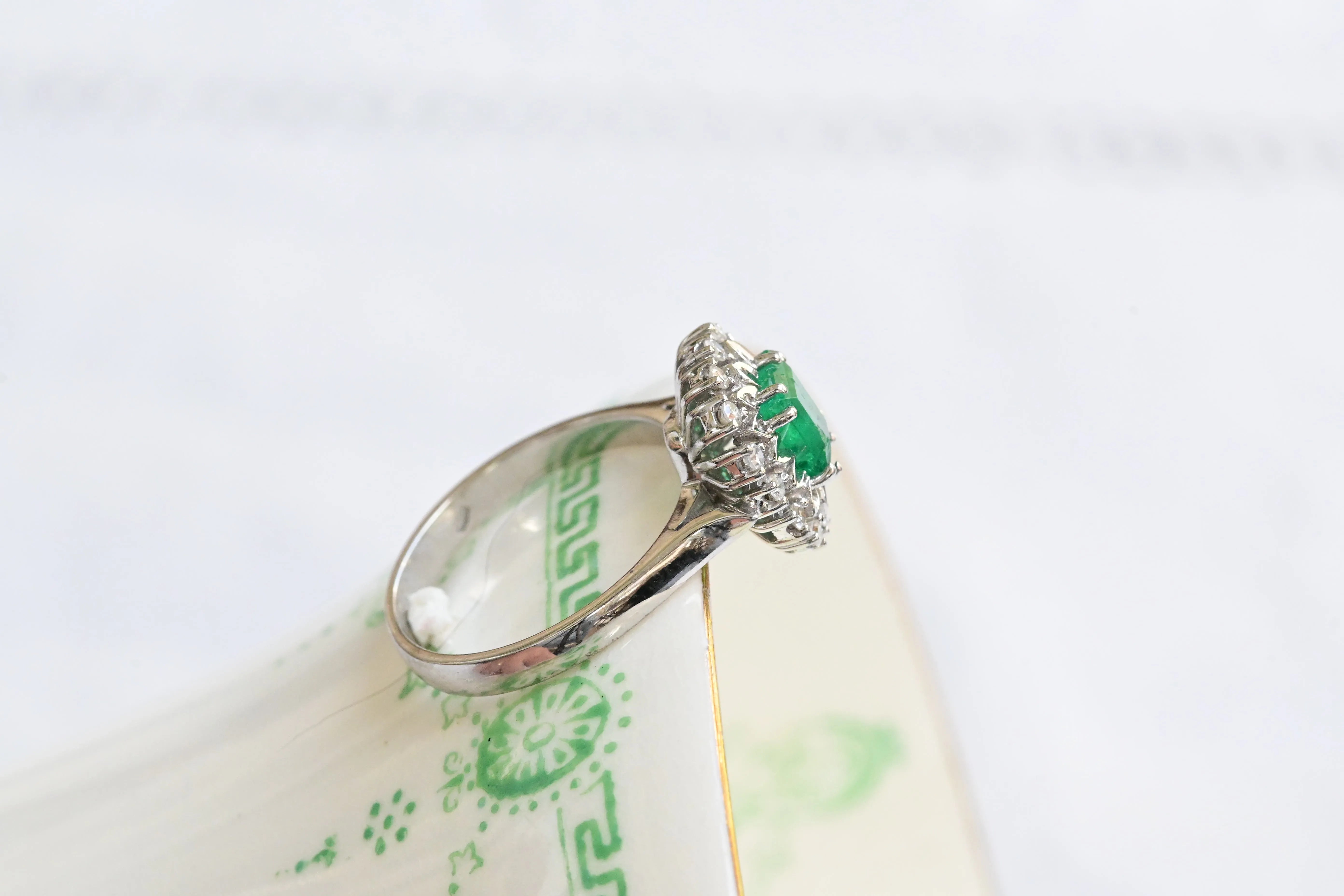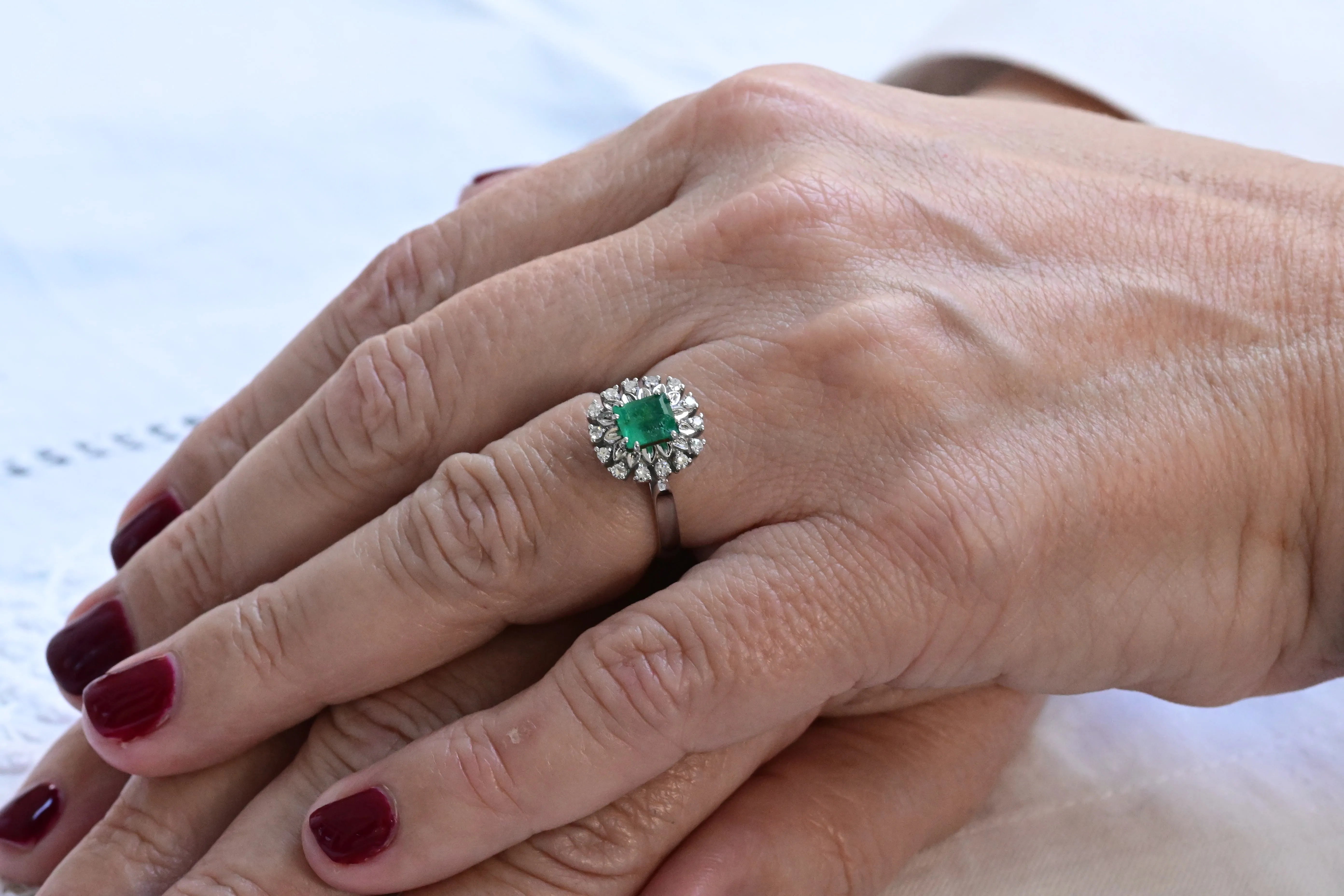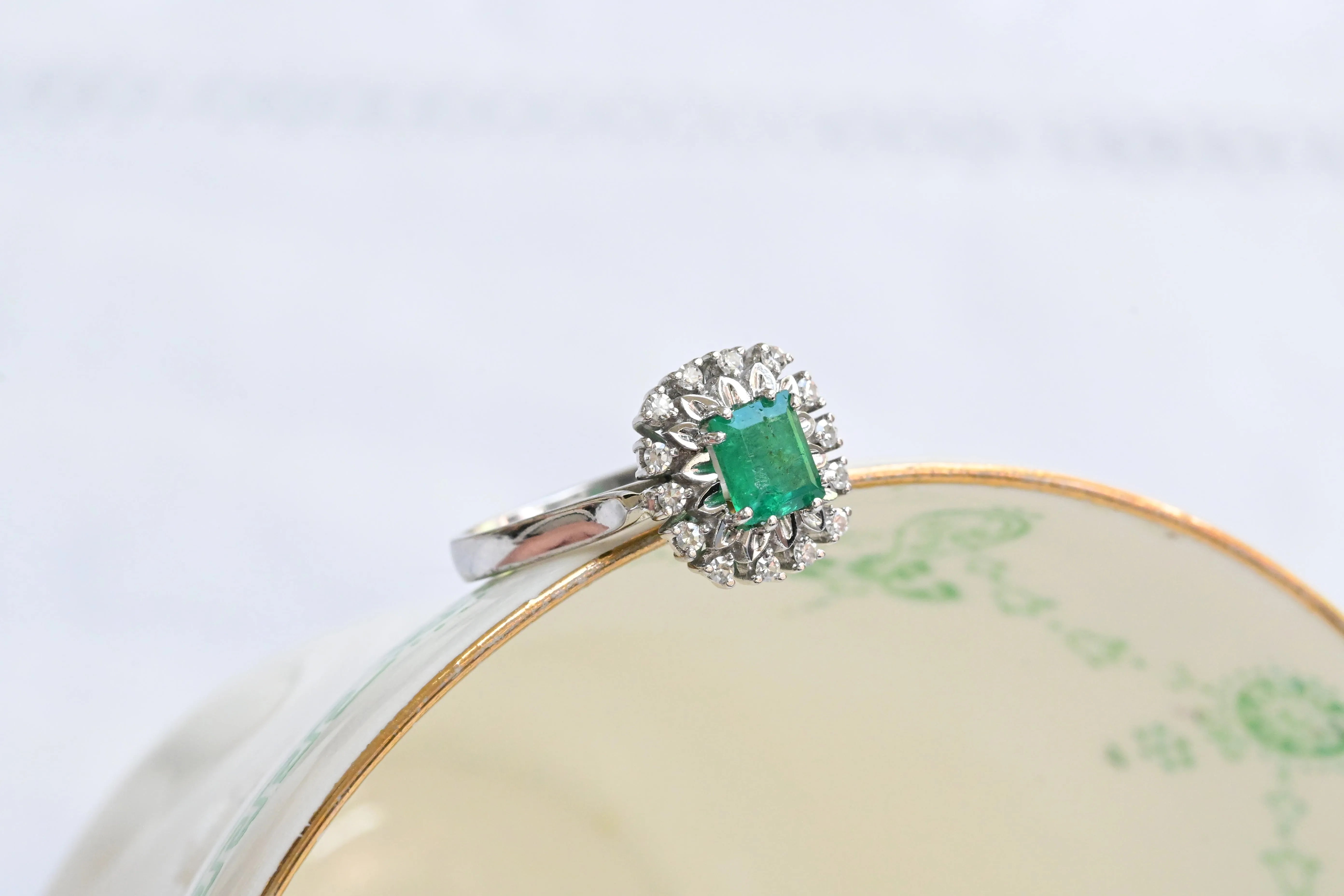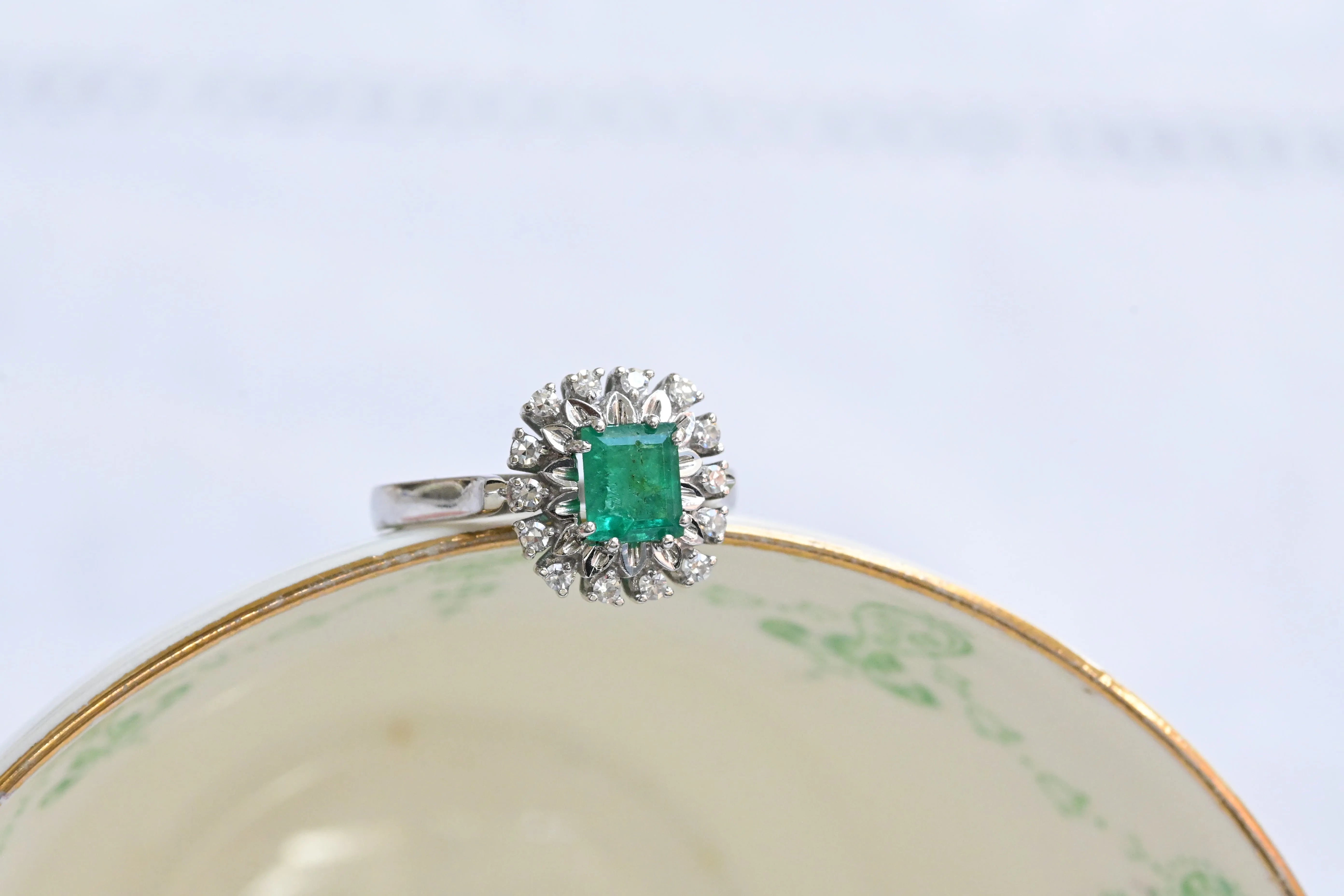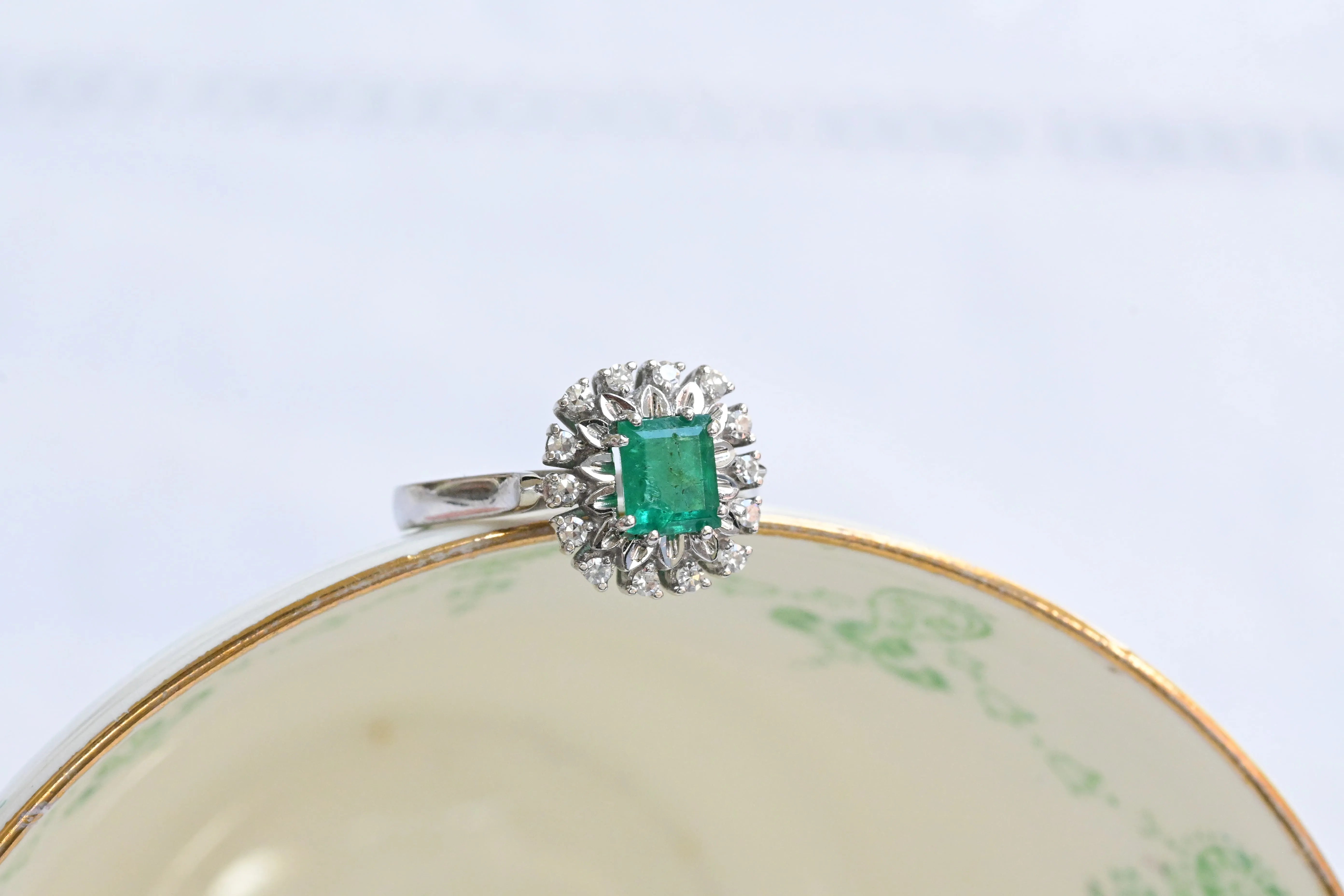 Bague vintage années 50 en émeraude et diamants