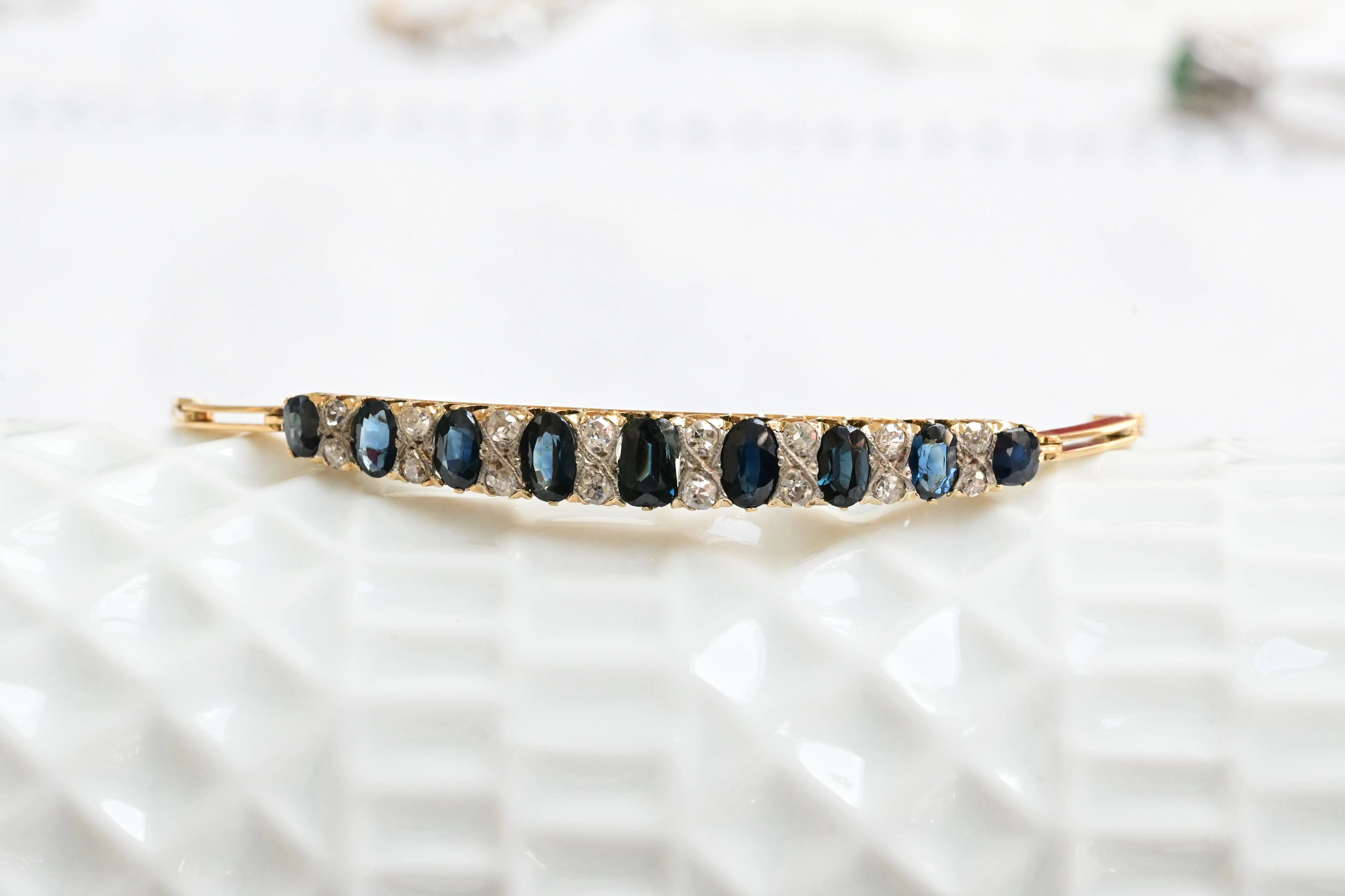Gemstones: 9 oval cut sapphires and 16 old cut diamonds.