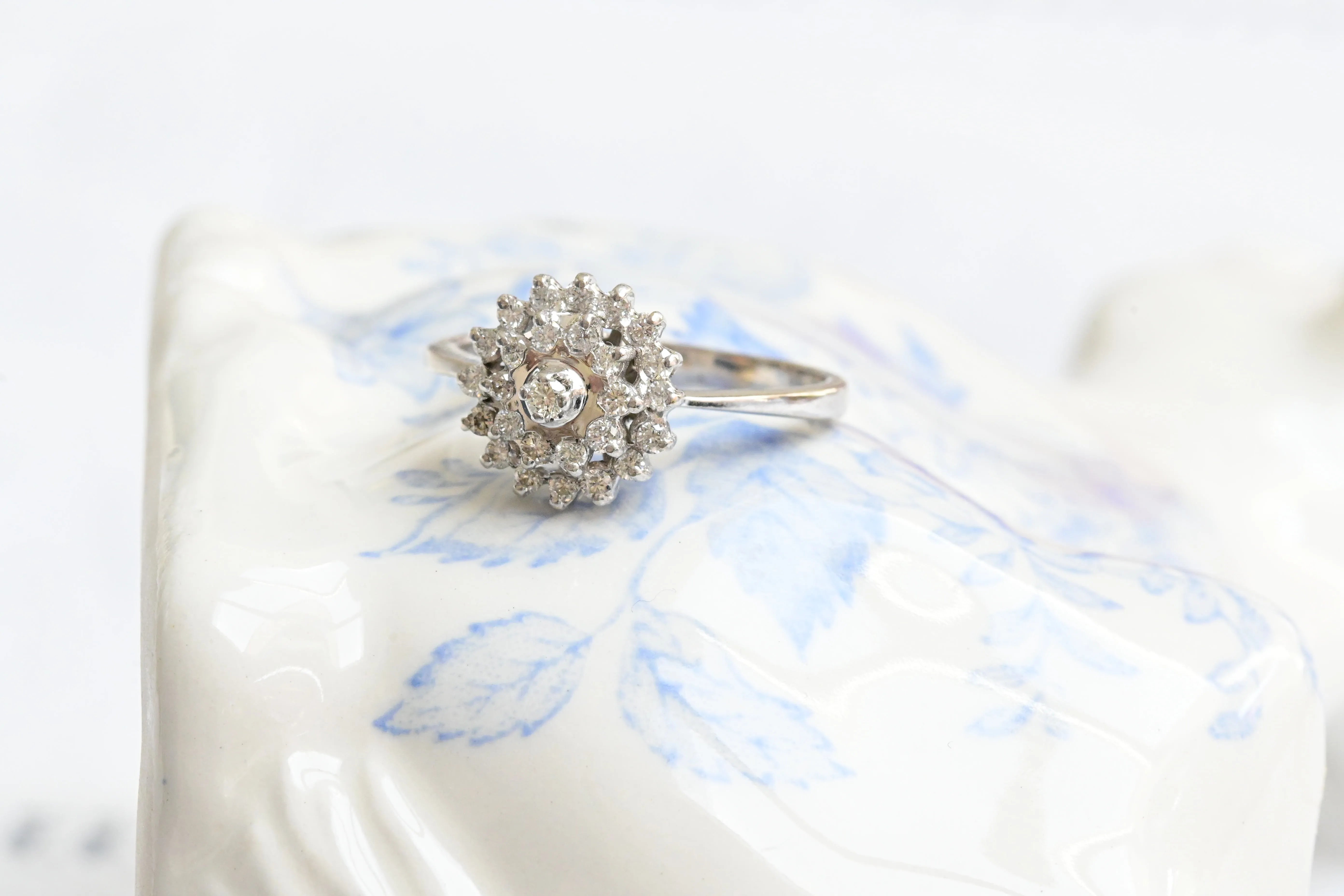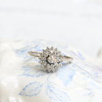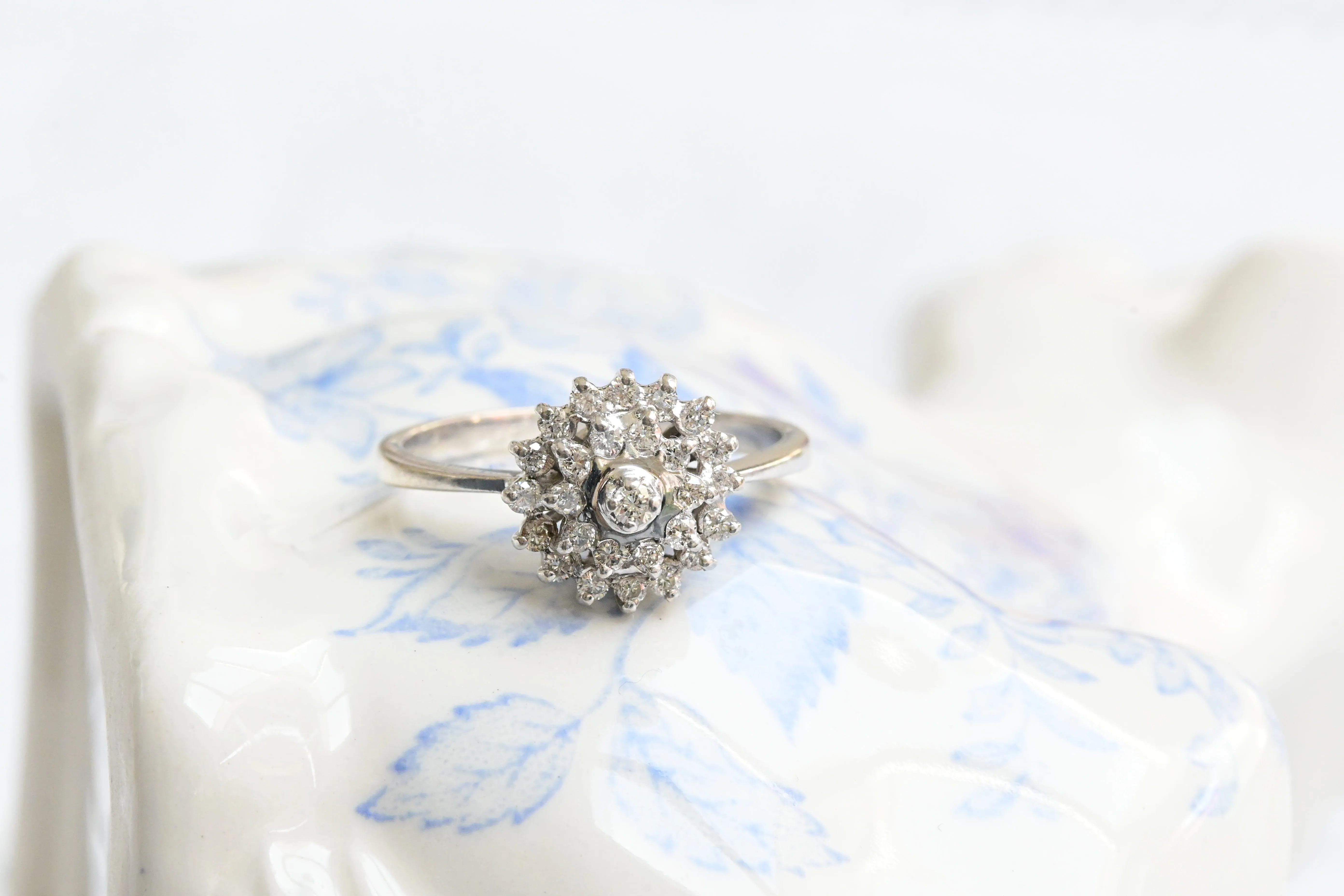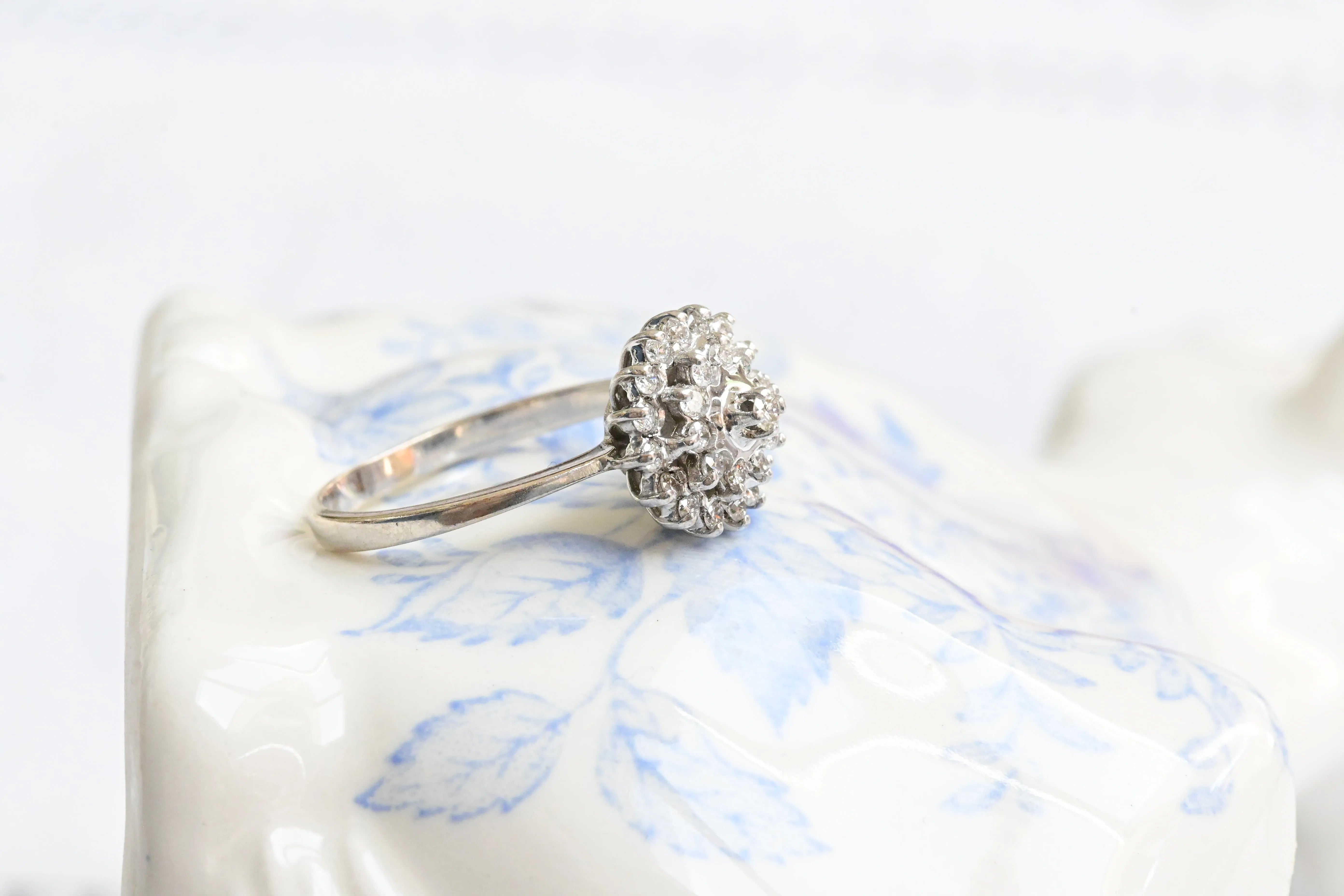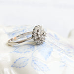 Vintage cocktail ring crafted in 18 K white gold with a total of twenty seven round brilliant cut diamonds