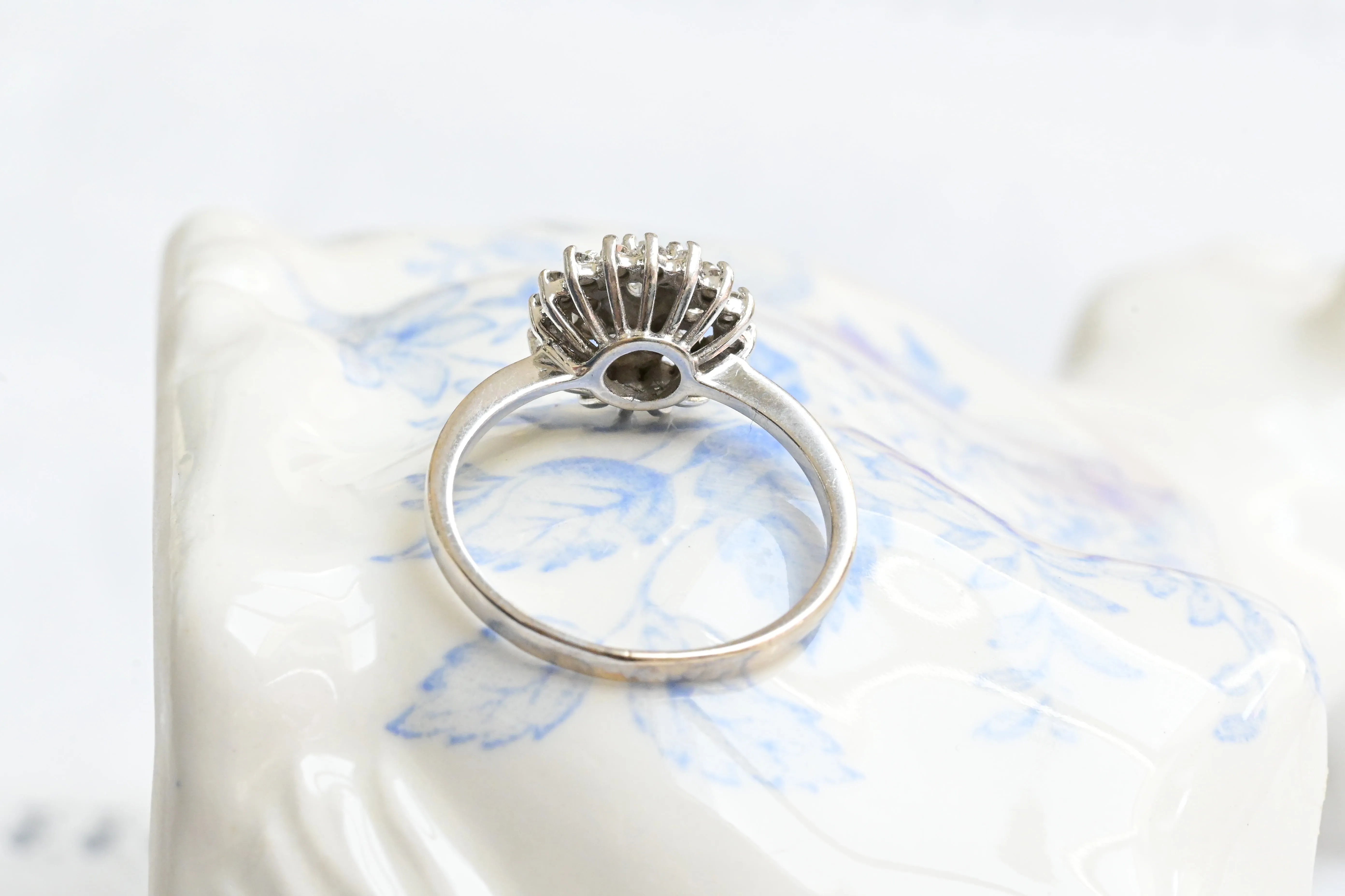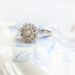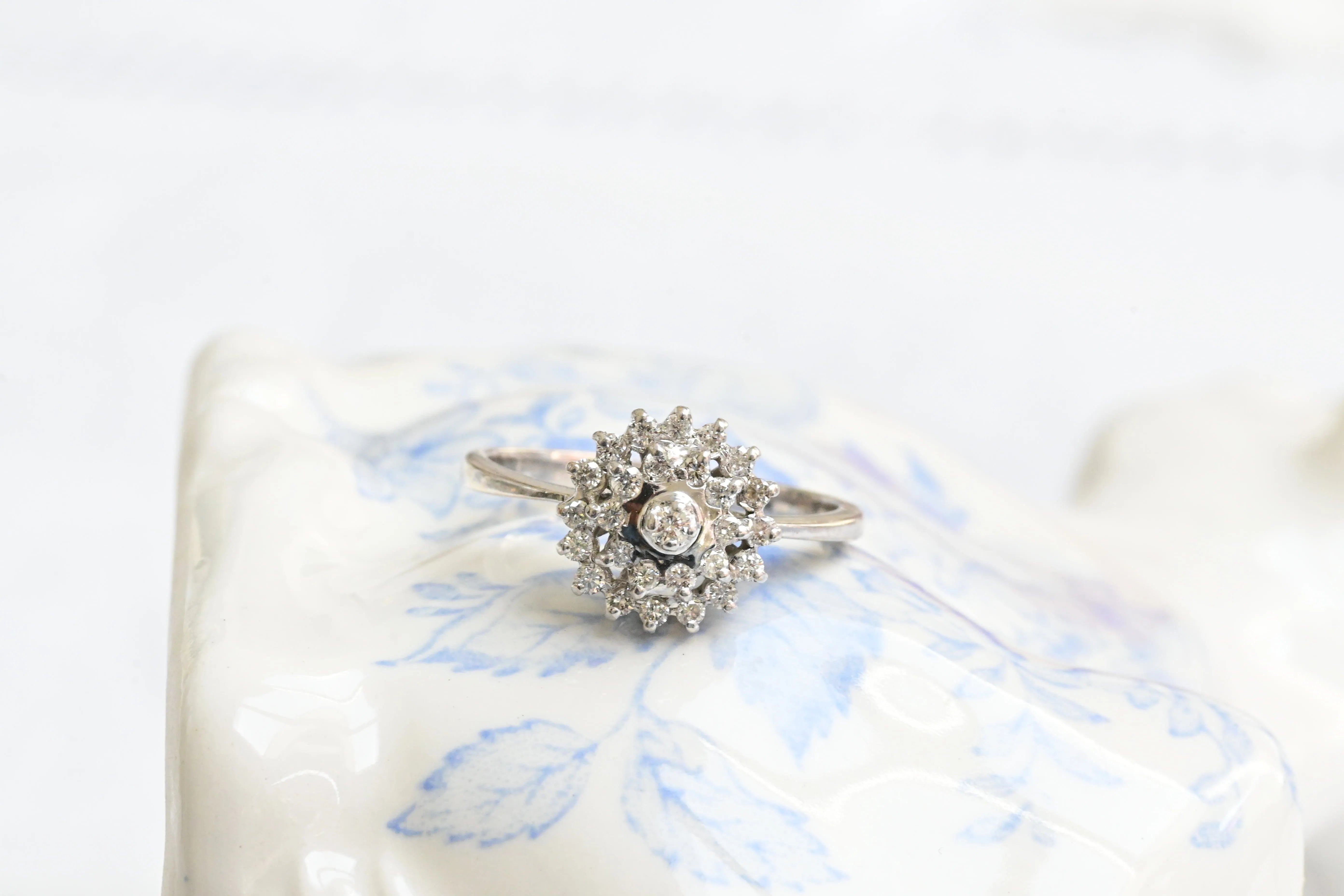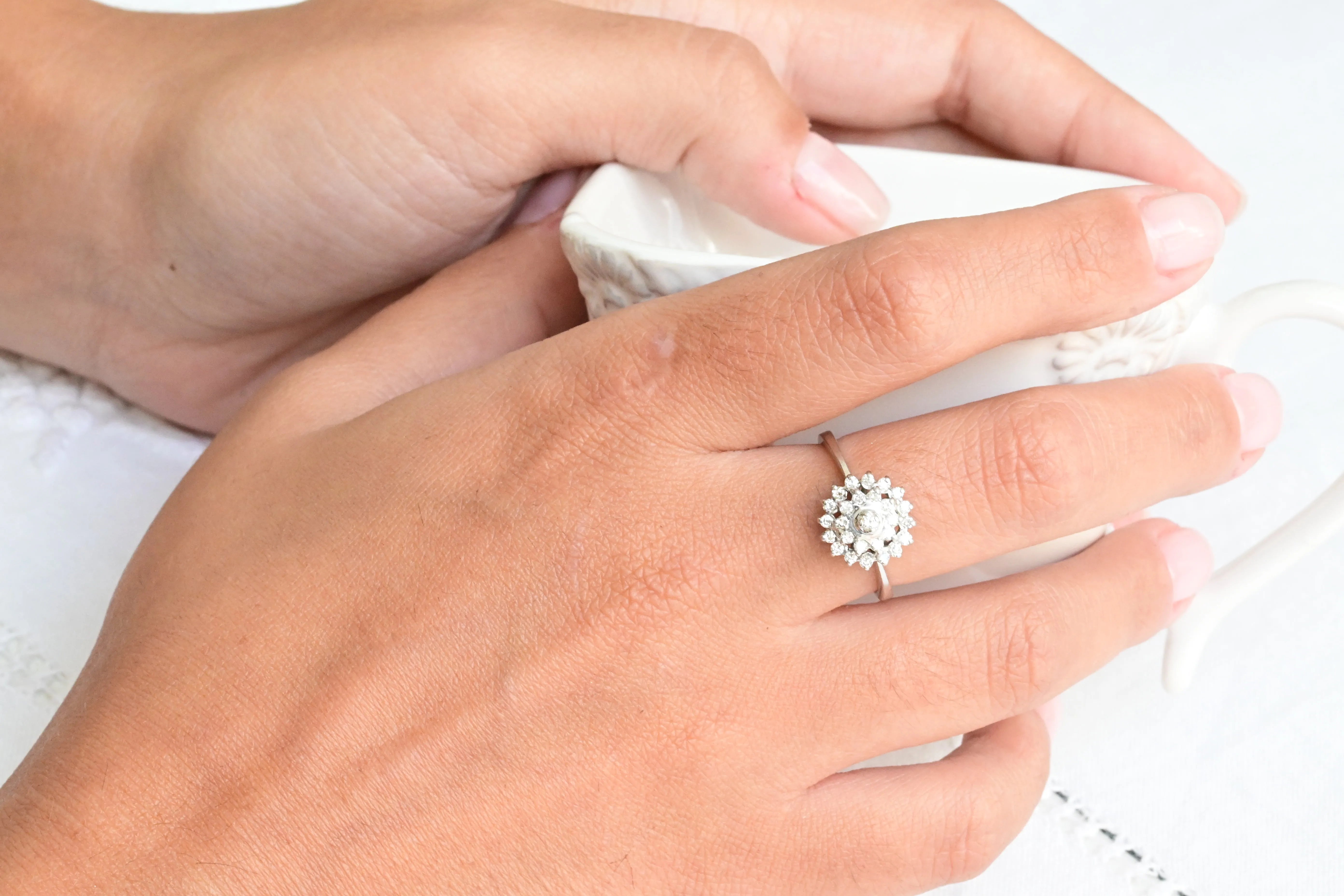 Vintage cocktail ring crafted in 18 K white gold with a total of twenty seven round brilliant cut diamonds