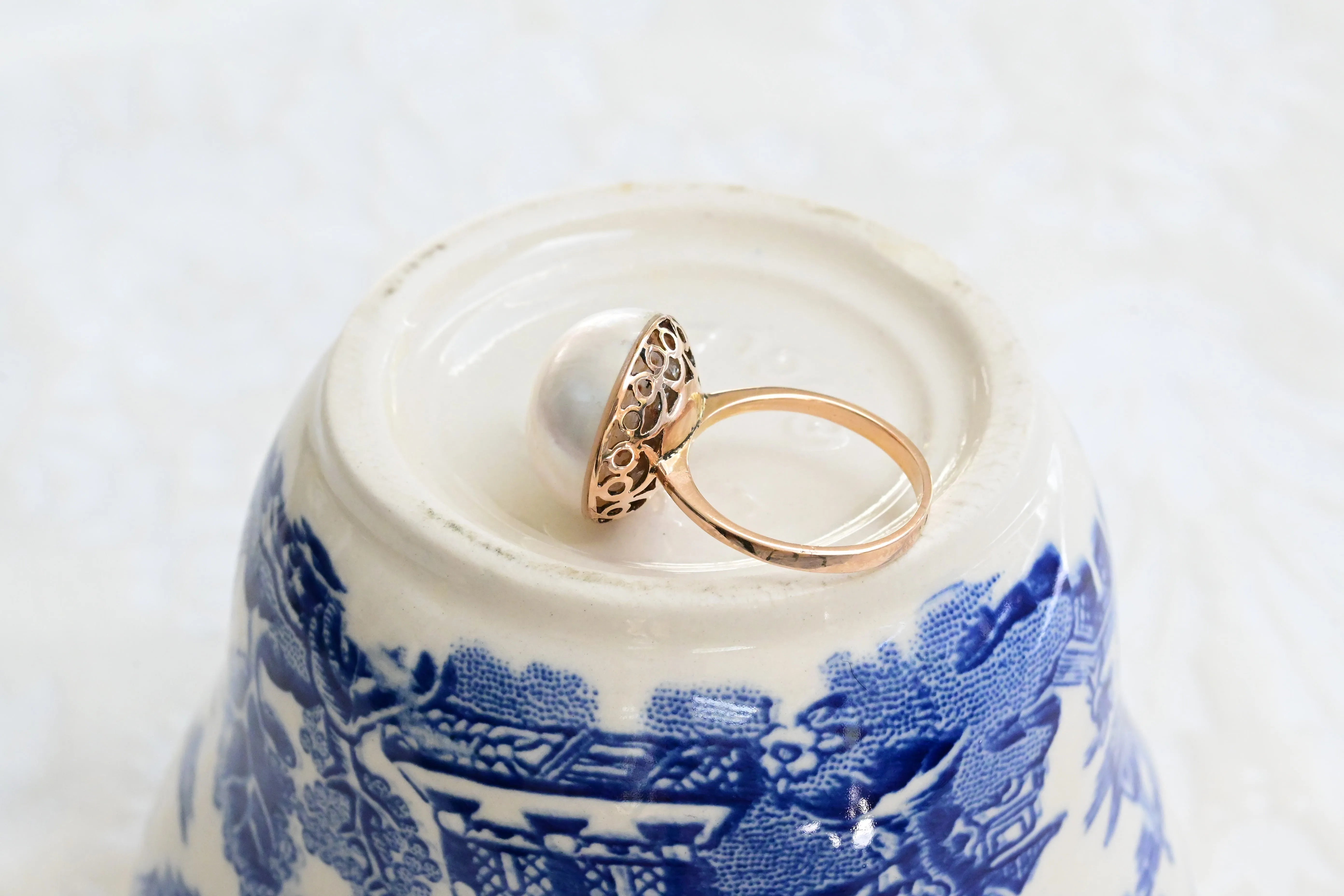 Vintage ring crafted in 18 K yellow gold with a central mabe pearl.