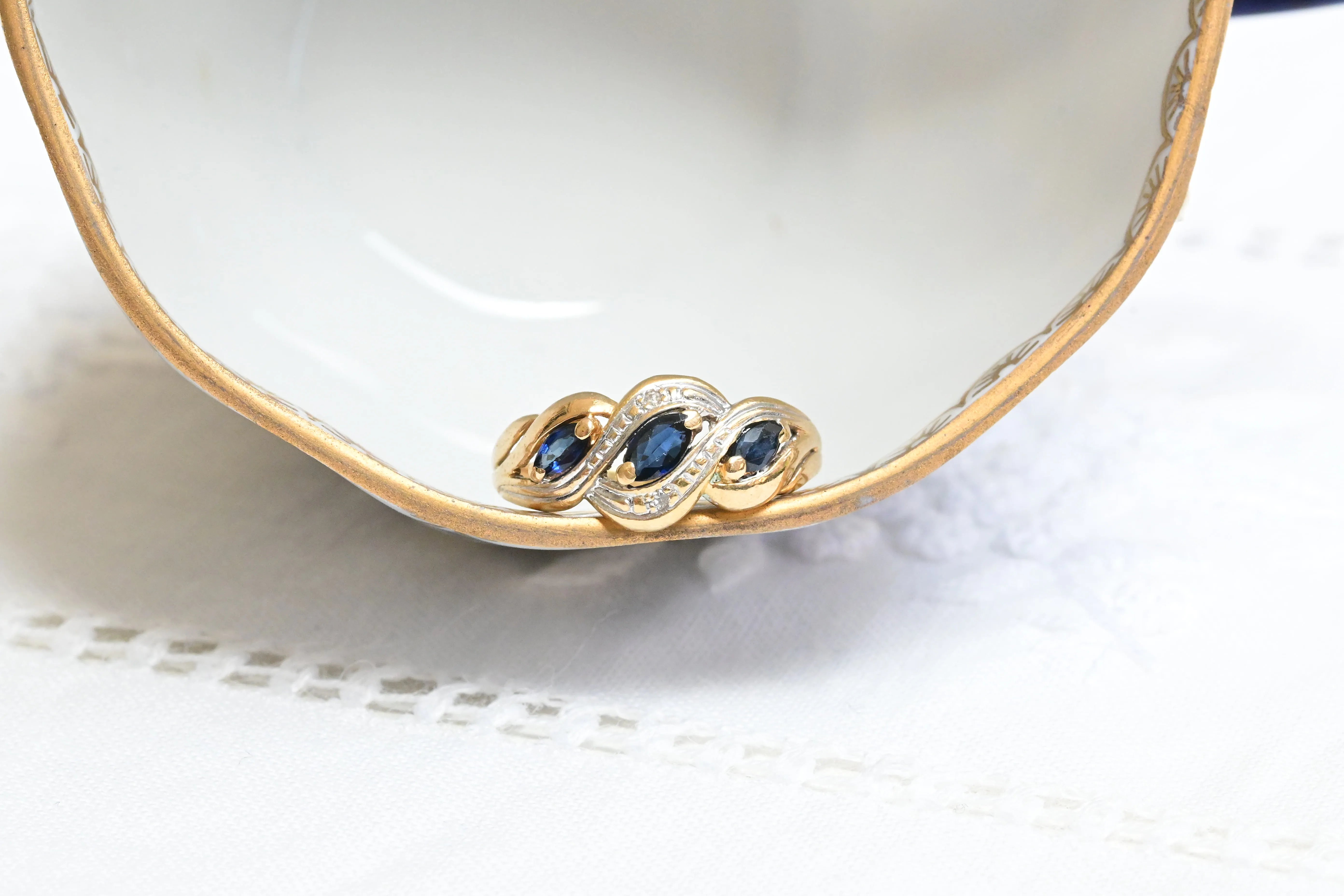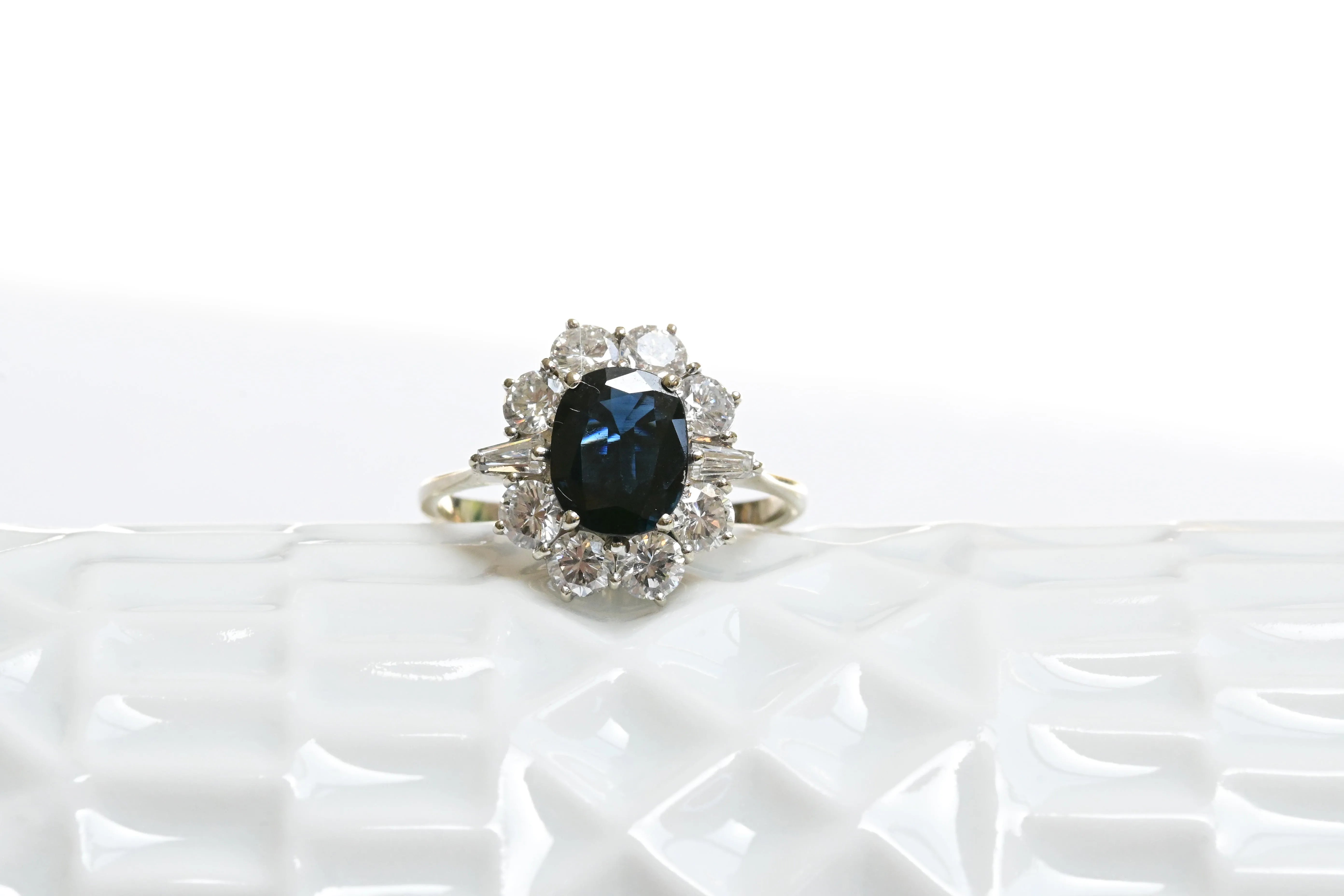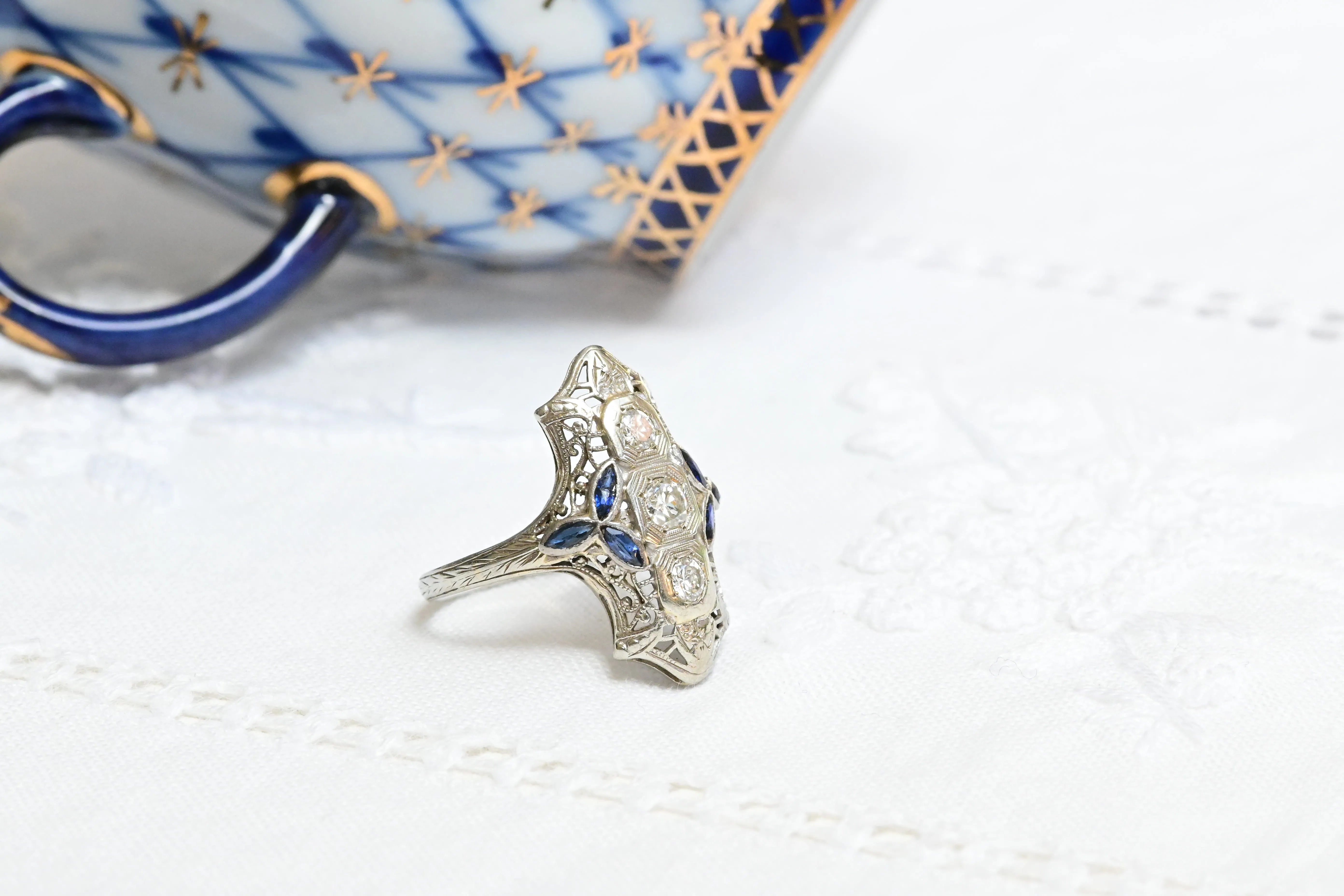Art Deco Saphir- und Diamantring aus 9K Gold