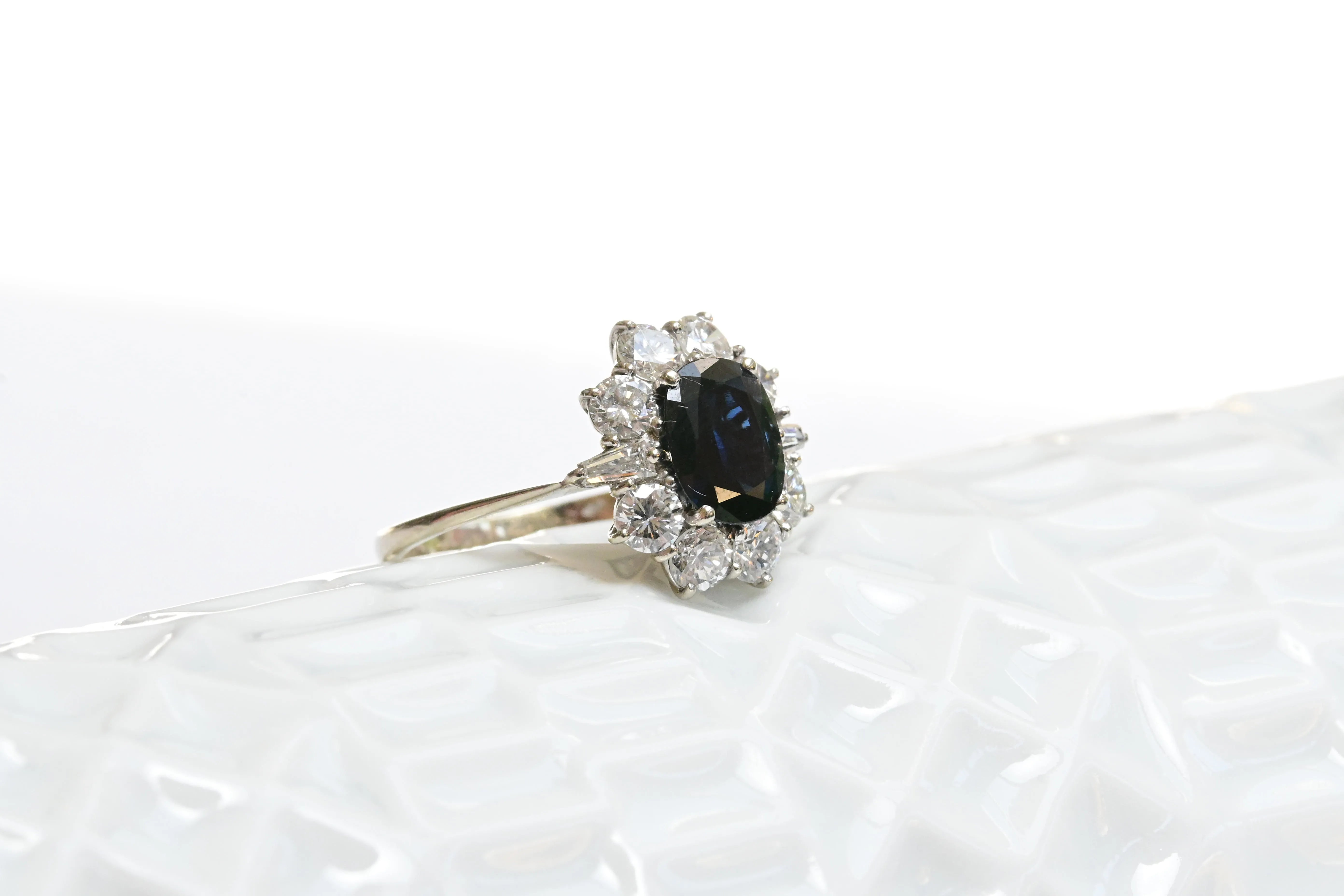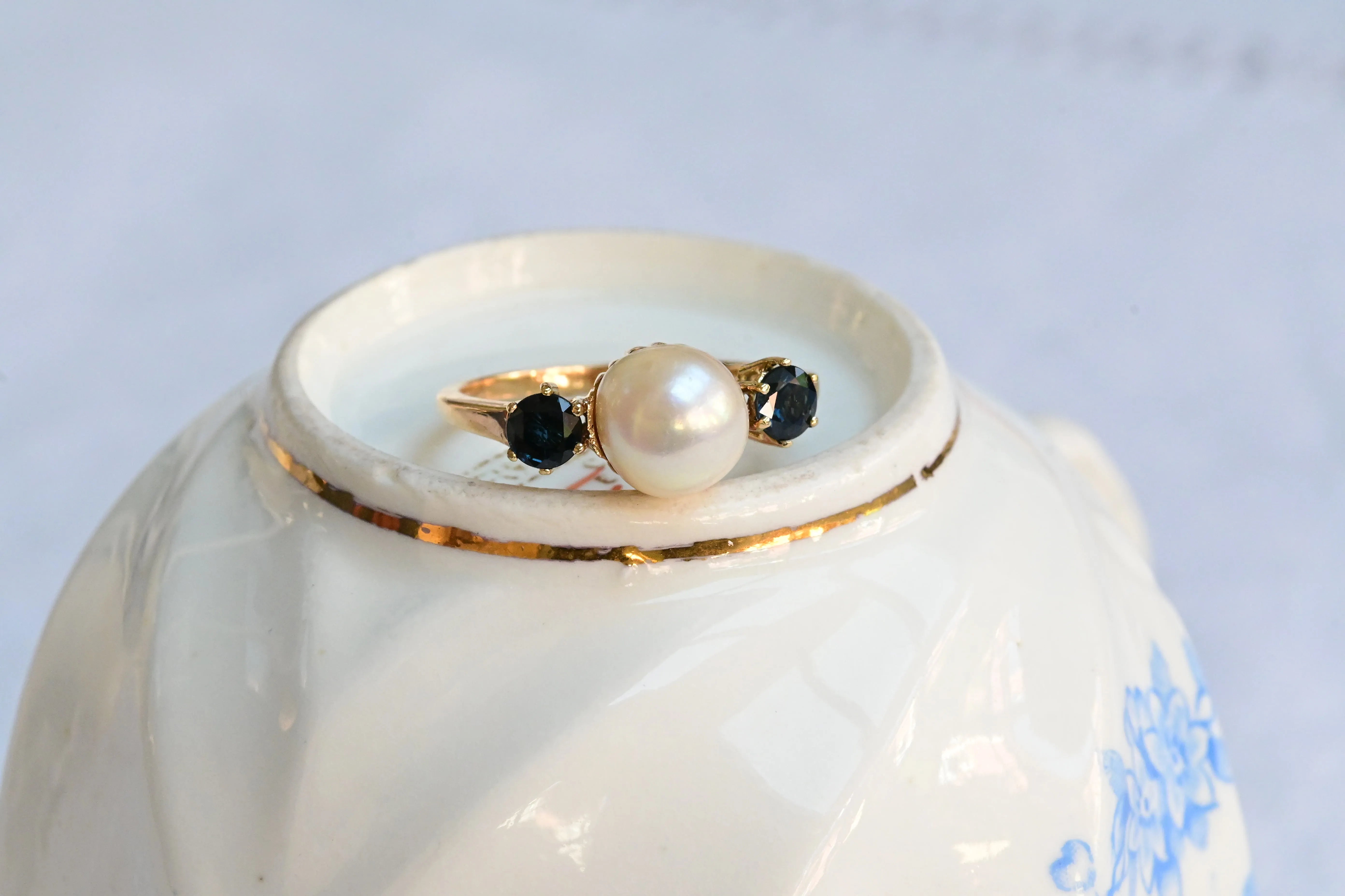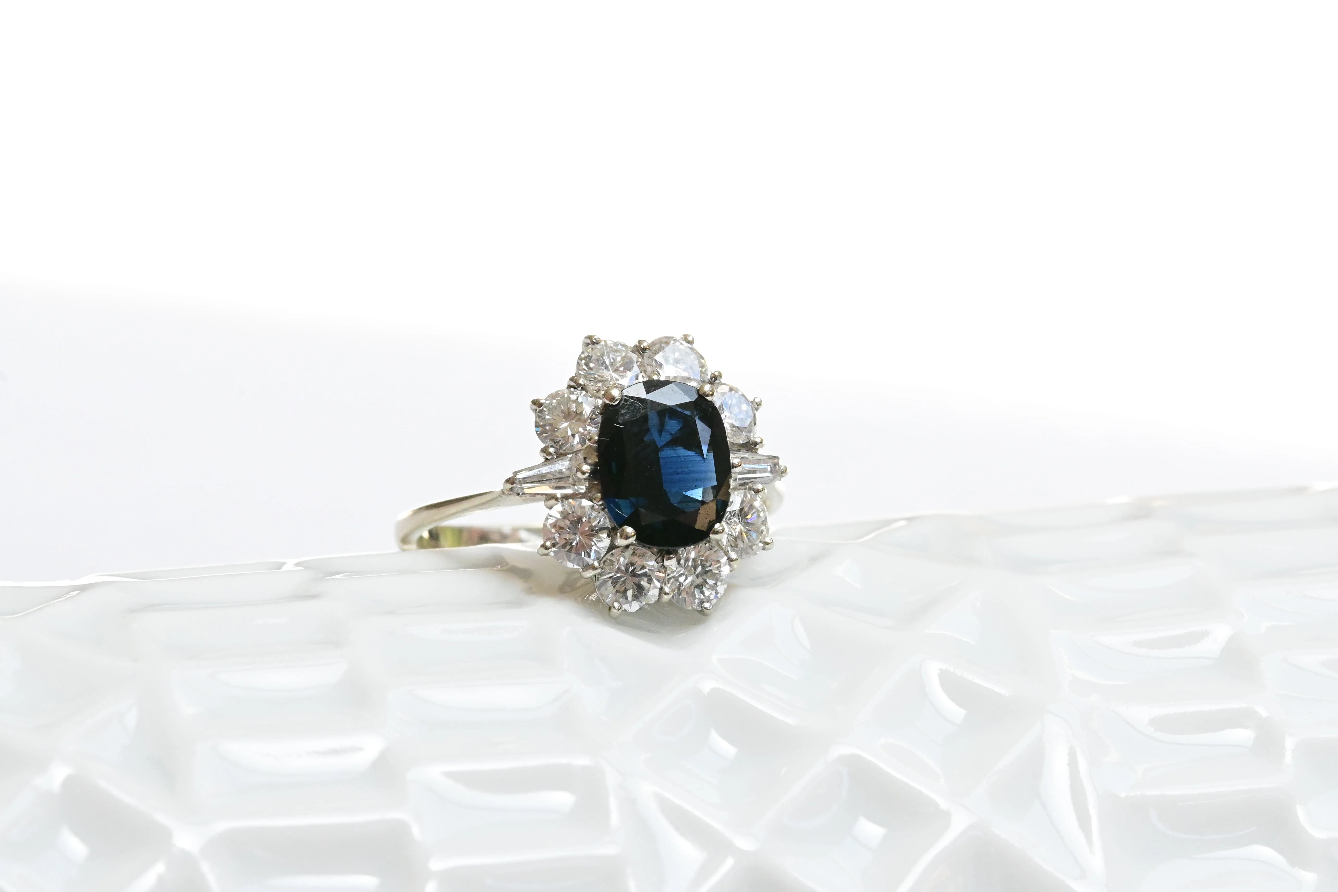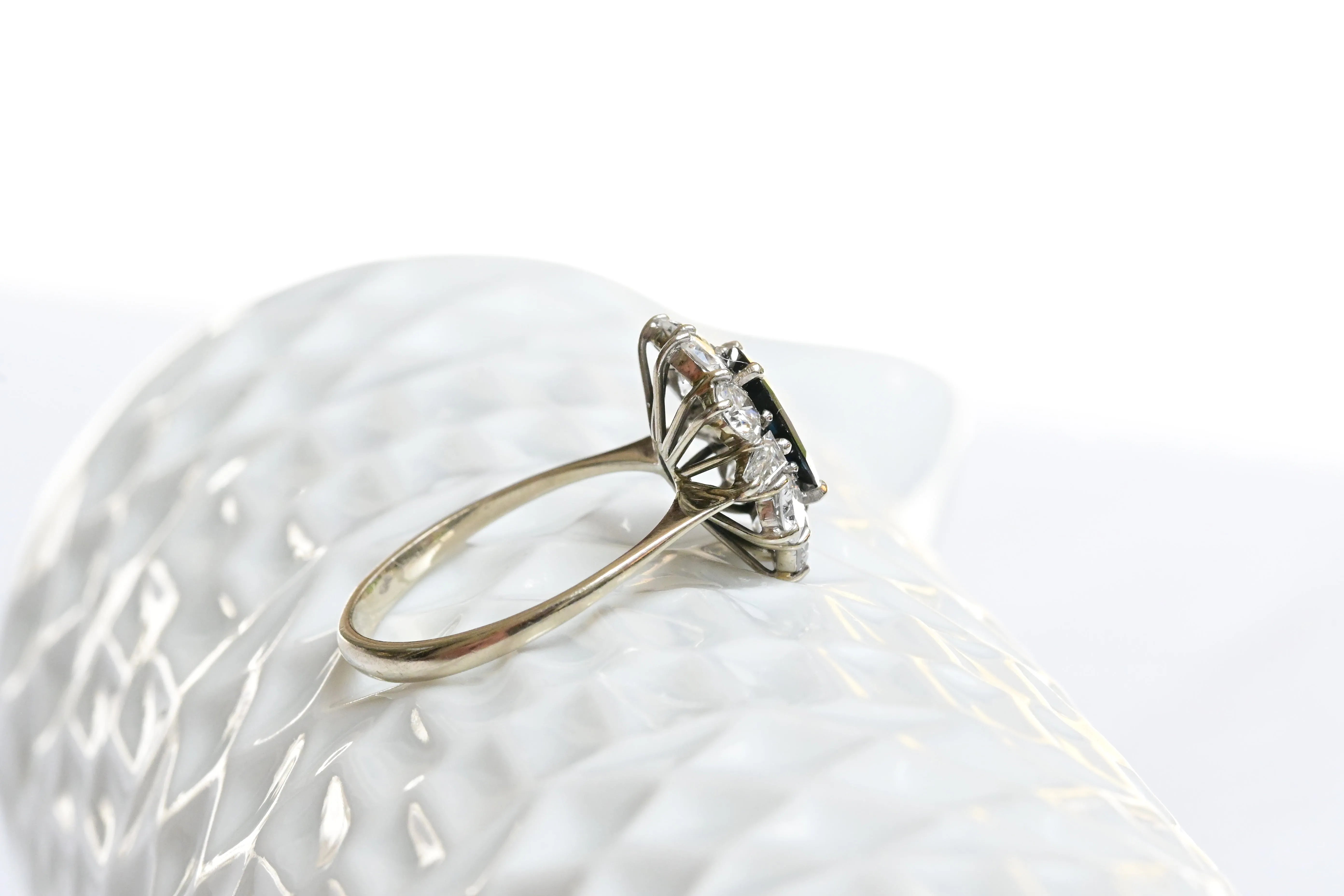 Art Deco Saphir- und Diamantring aus 9K Gold