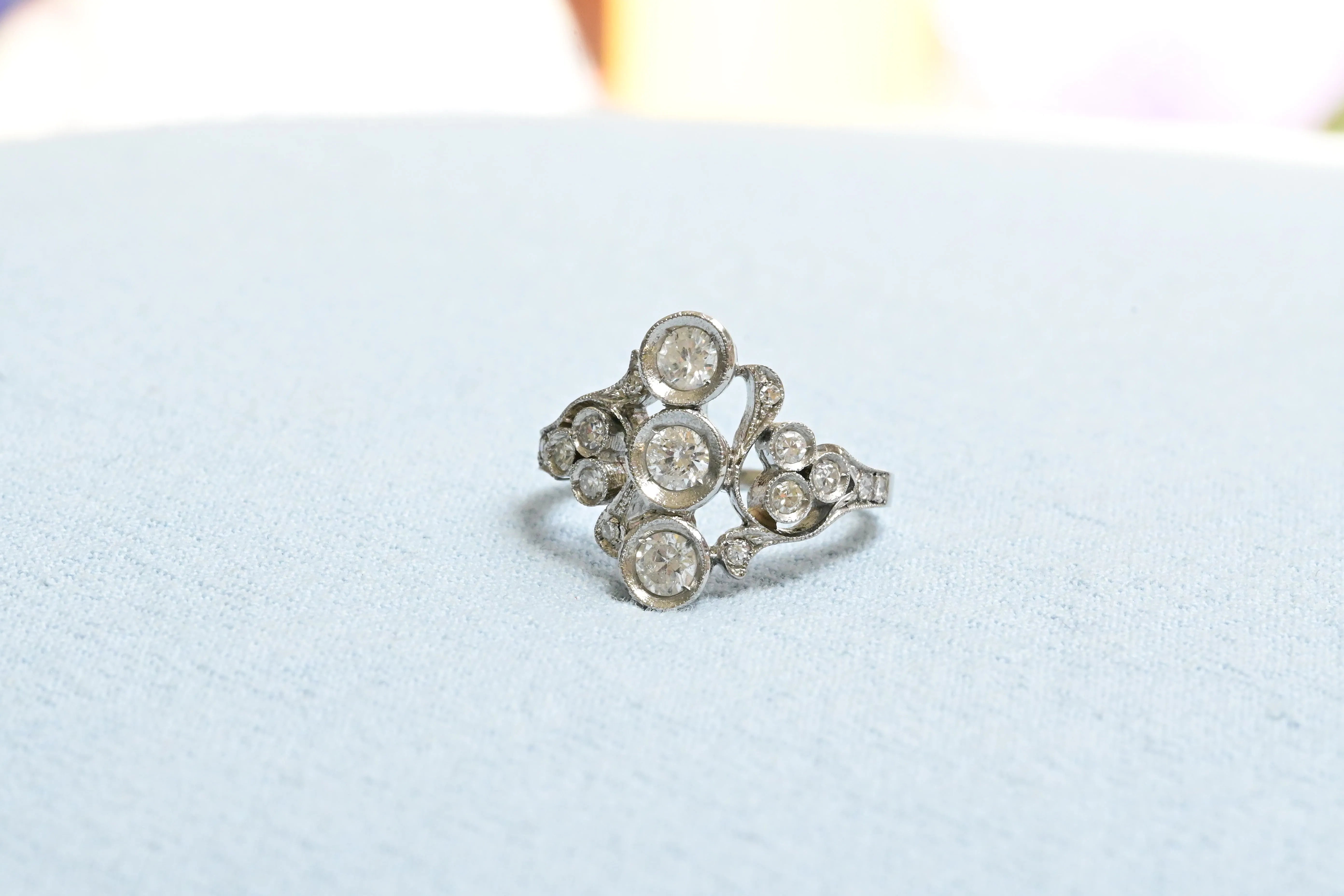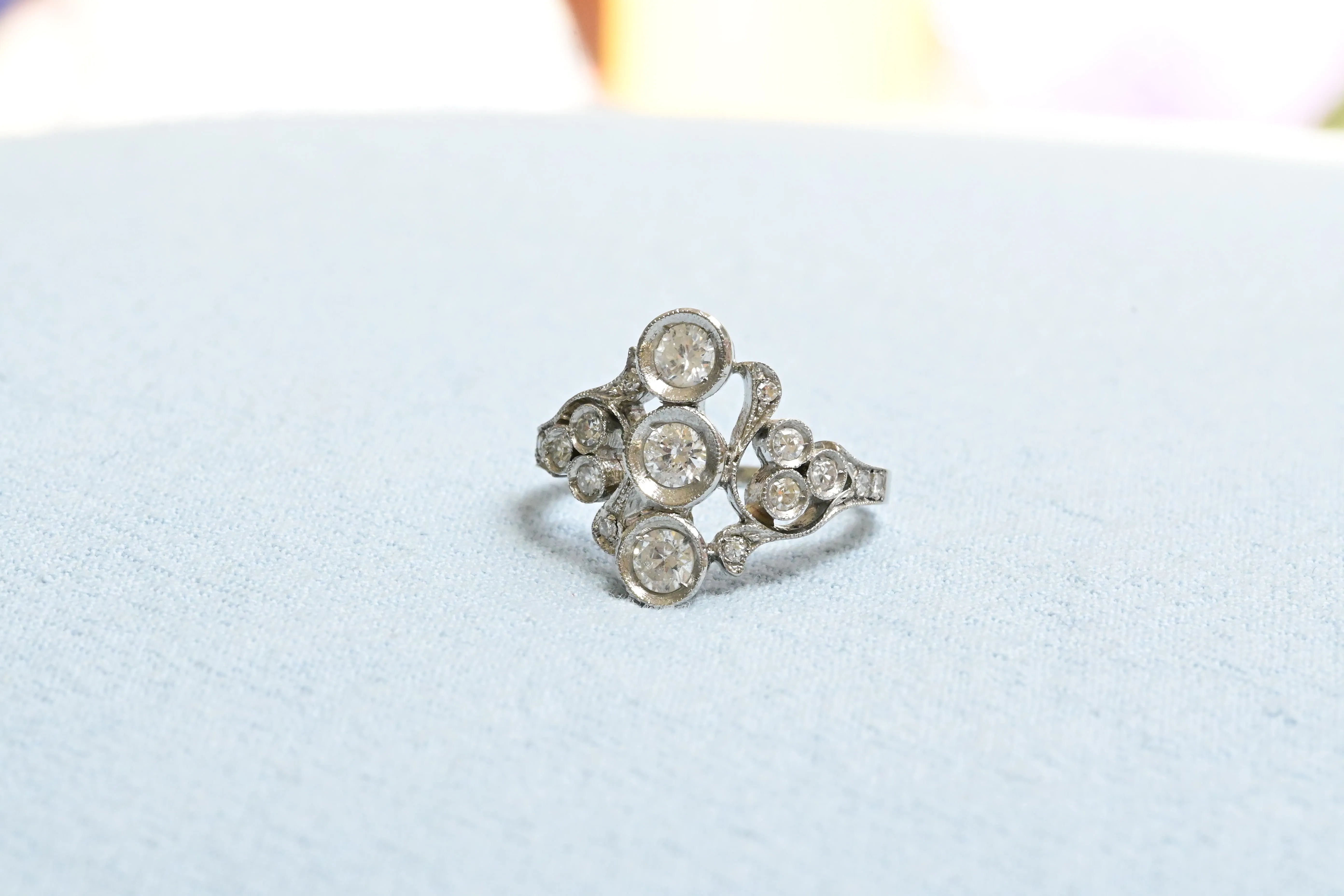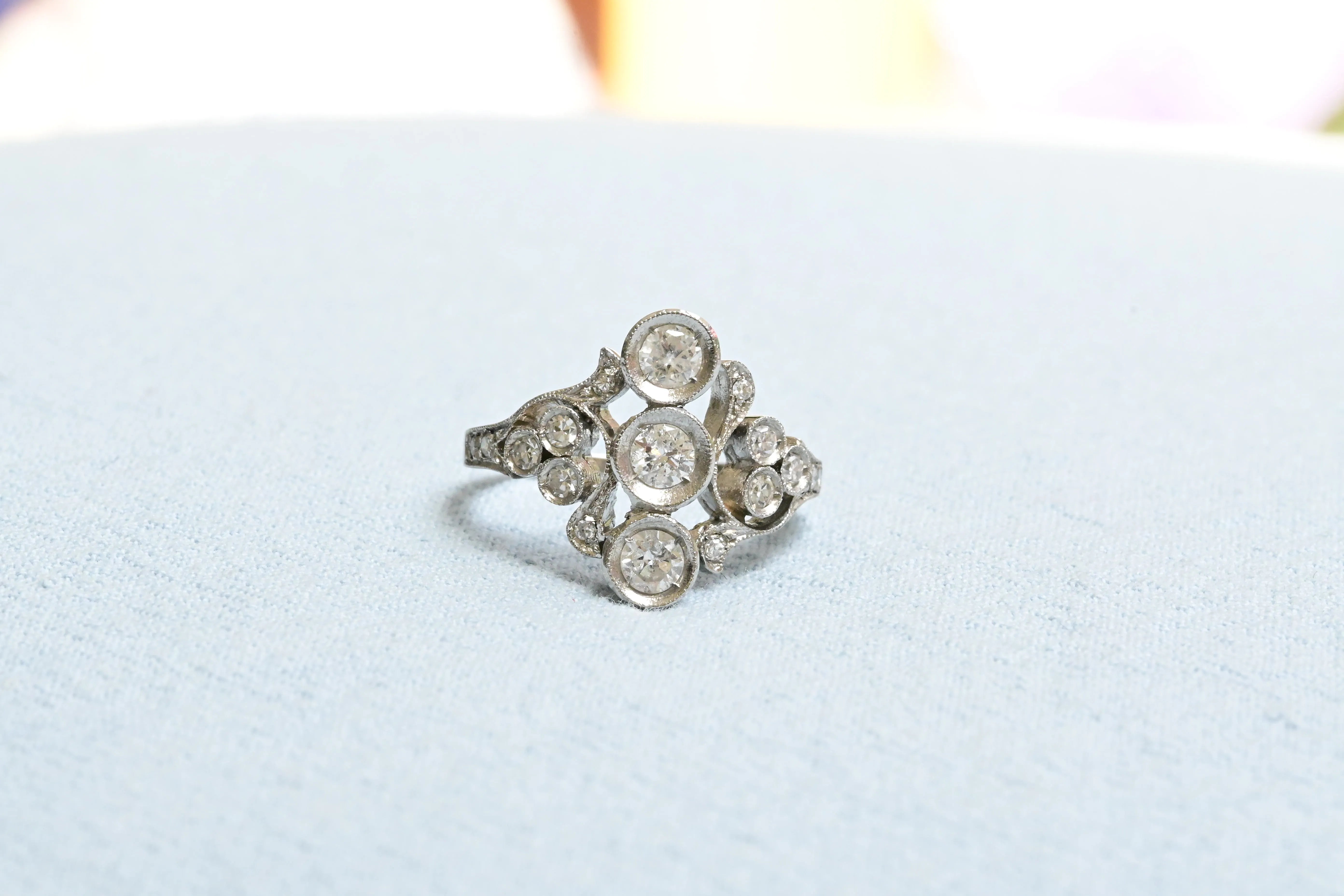 Art Nouveau Cocktail Ring with 39 Diamonds in 18K Gold