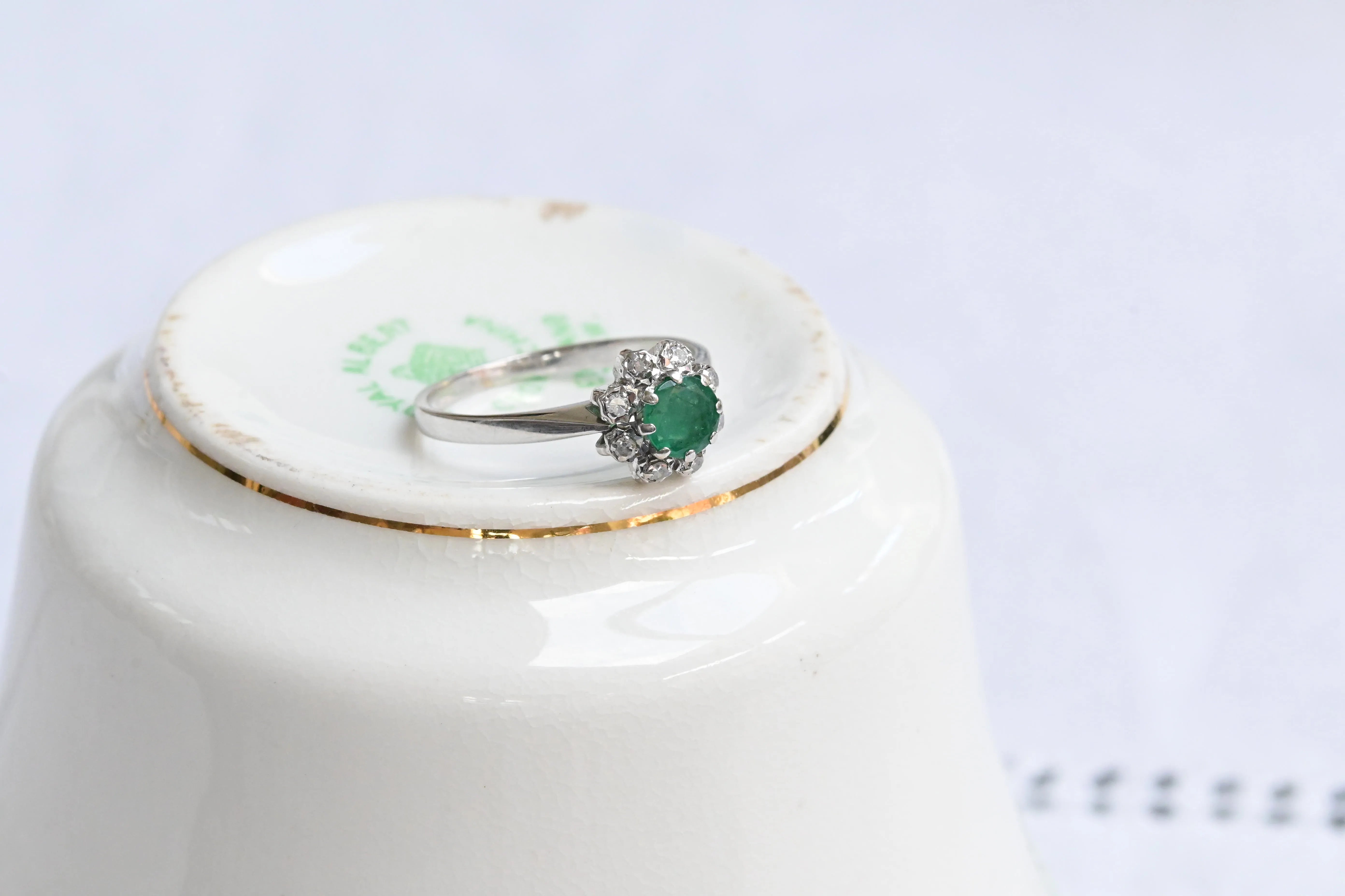 Vintage cvetlični prstan s smaragdom