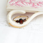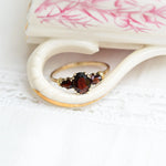 Dragulji: 1 centralni granat ovalnega reza in 2 granata v obliki hruške.